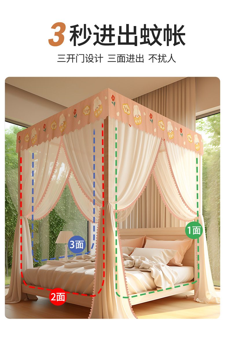 商品名称:(总)家用落地式拉幕蚊帐 2025新款防尘卧室1.5/1.8米床