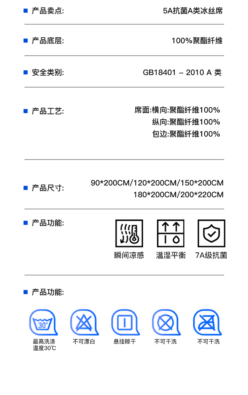 商品名称:(总)鑫姿 2025新款5A抗菌A类冰丝凉席-饼干花熊猫款