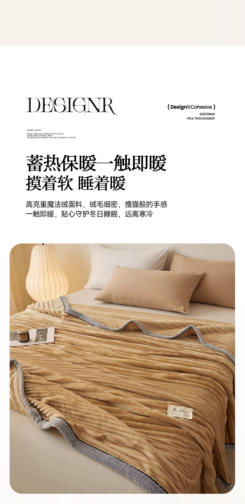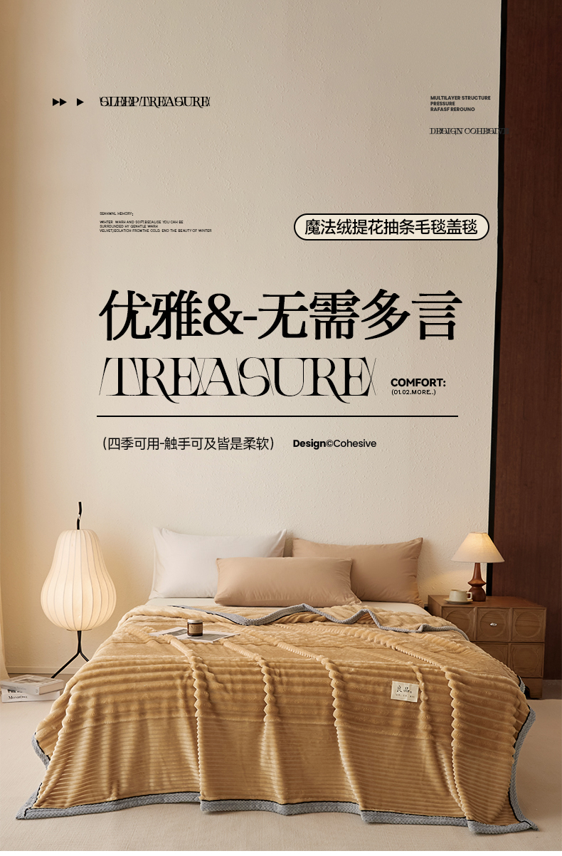 商品名称:澳梵家居 2025新款魔法绒糯糯绒提花抽条毛毯盖毯 简约-粉