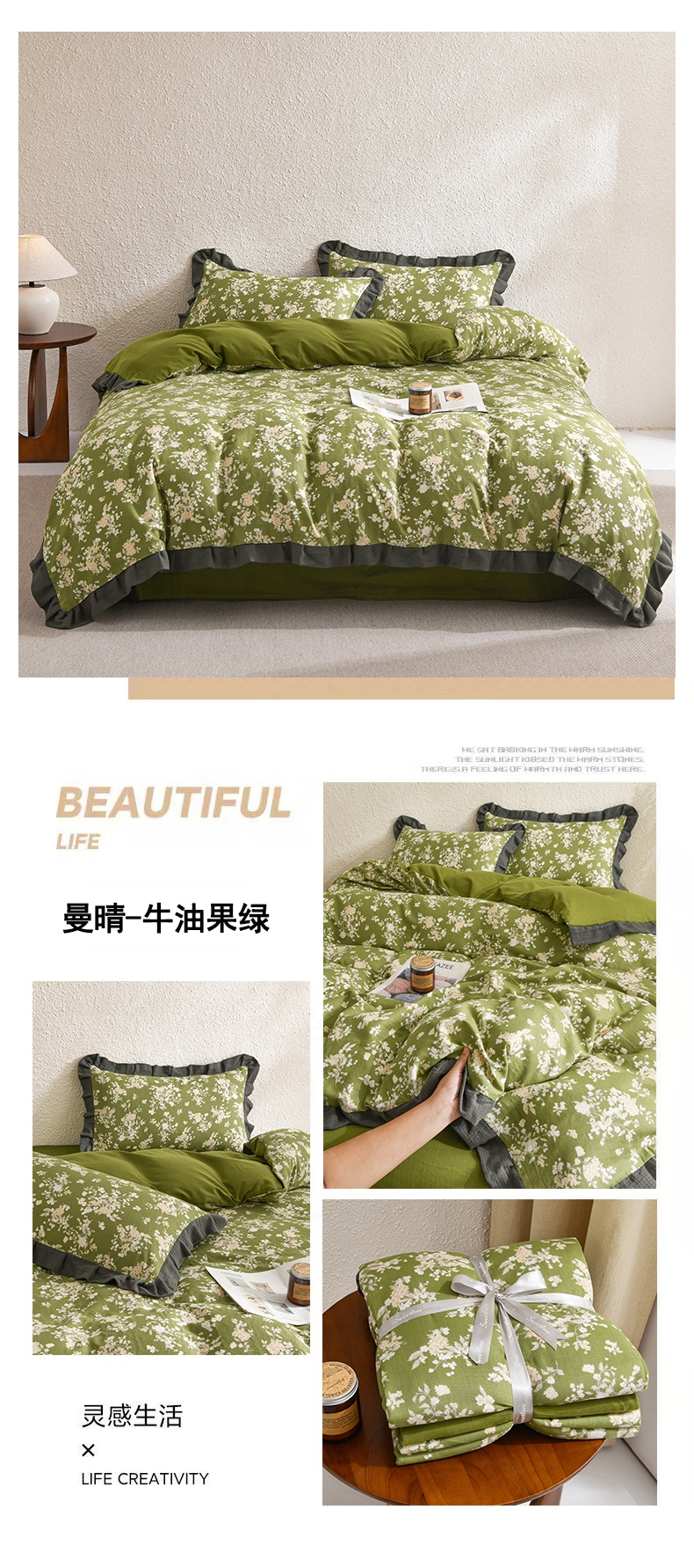 (总)金艾草 2024新款水洗全棉浮雕提花床盖四件套,圣罗纳-灰,片叶情-豆绿,罗曼-浅绿,蜀锦-茉莉白,轻颜-珊瑚粉