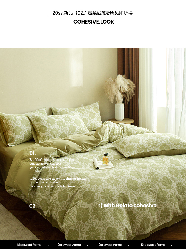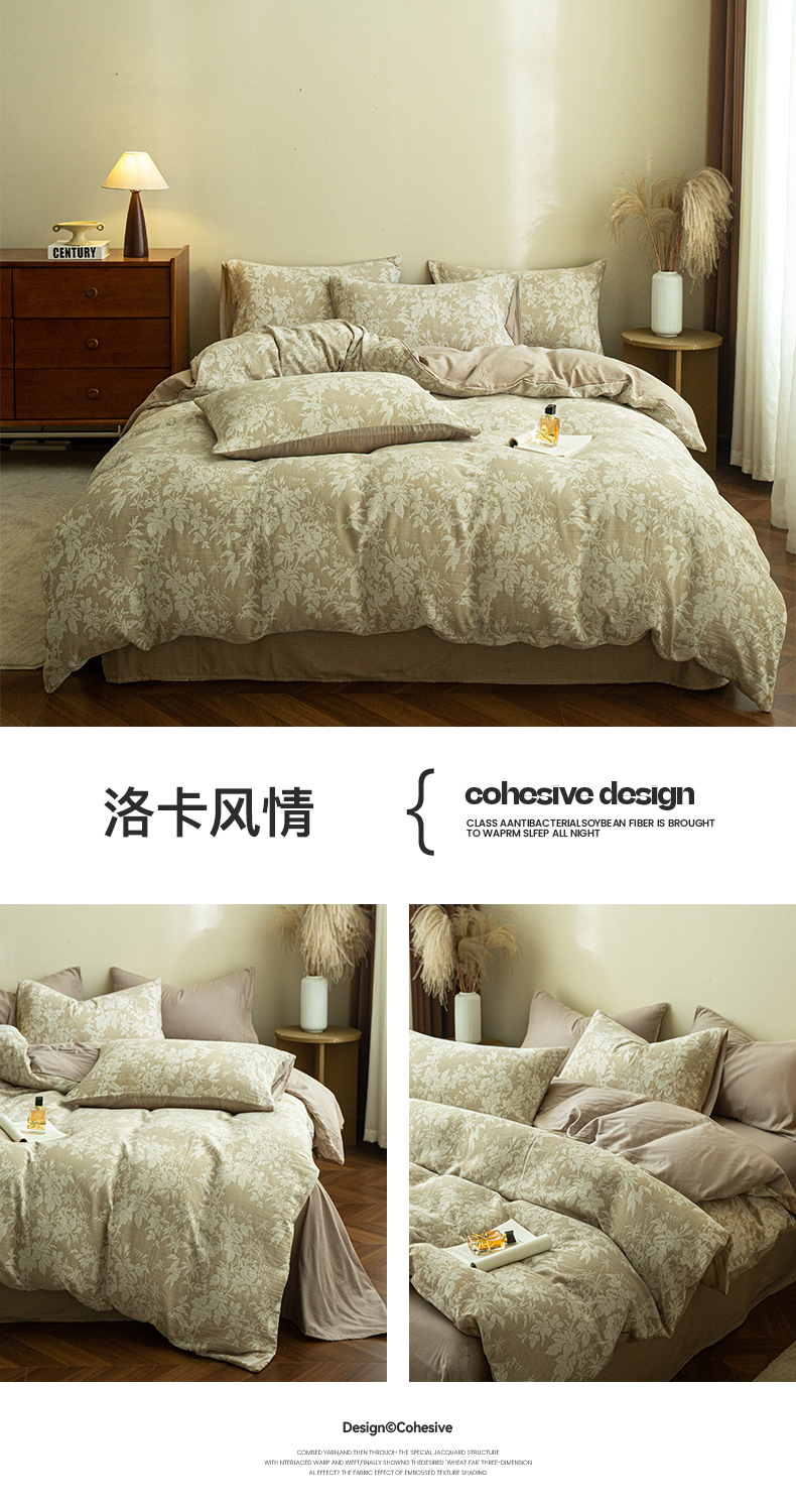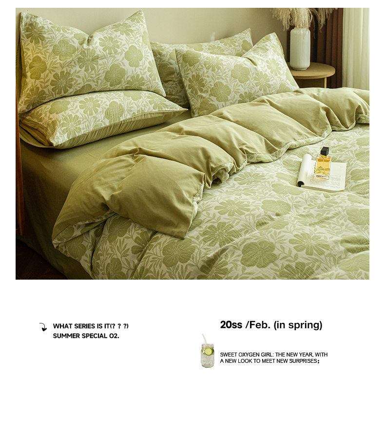 (总)沐棉家居 2025新款亲肤舒适全棉纯棉提花四件套,春田,菱格咖,菱格米-灰,菱格奶咖,涂鸦米-绿