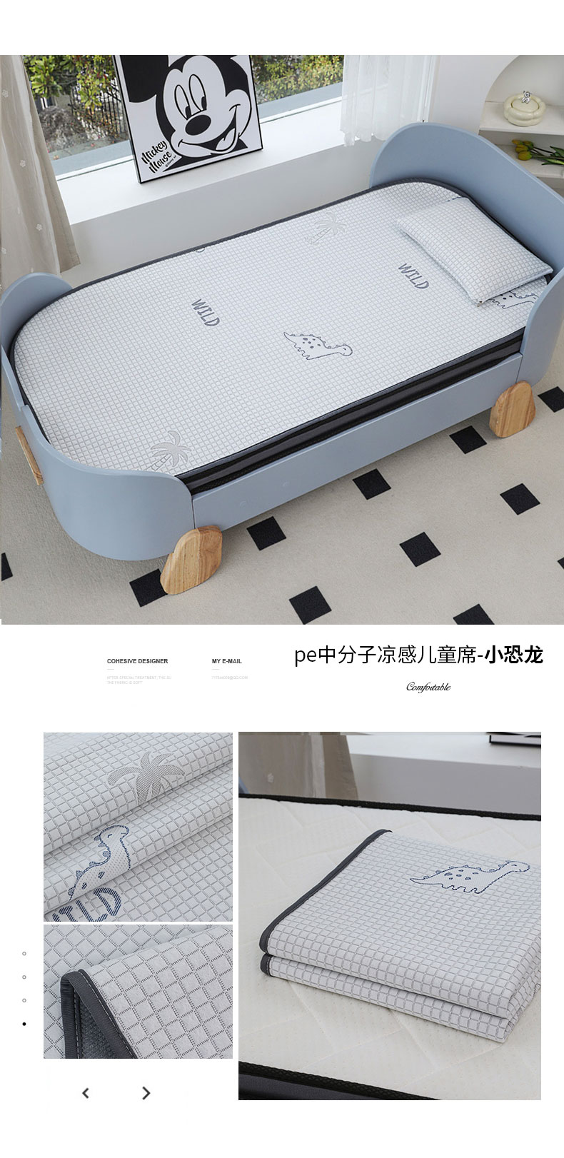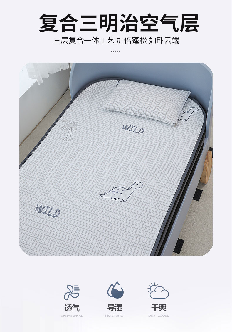 • 91家纺网 家纺一手货源 找家纺 宅部落 2025新款A类PE凉感儿童抗菌凉席 pe凉感儿童抗菌席-小恐龙