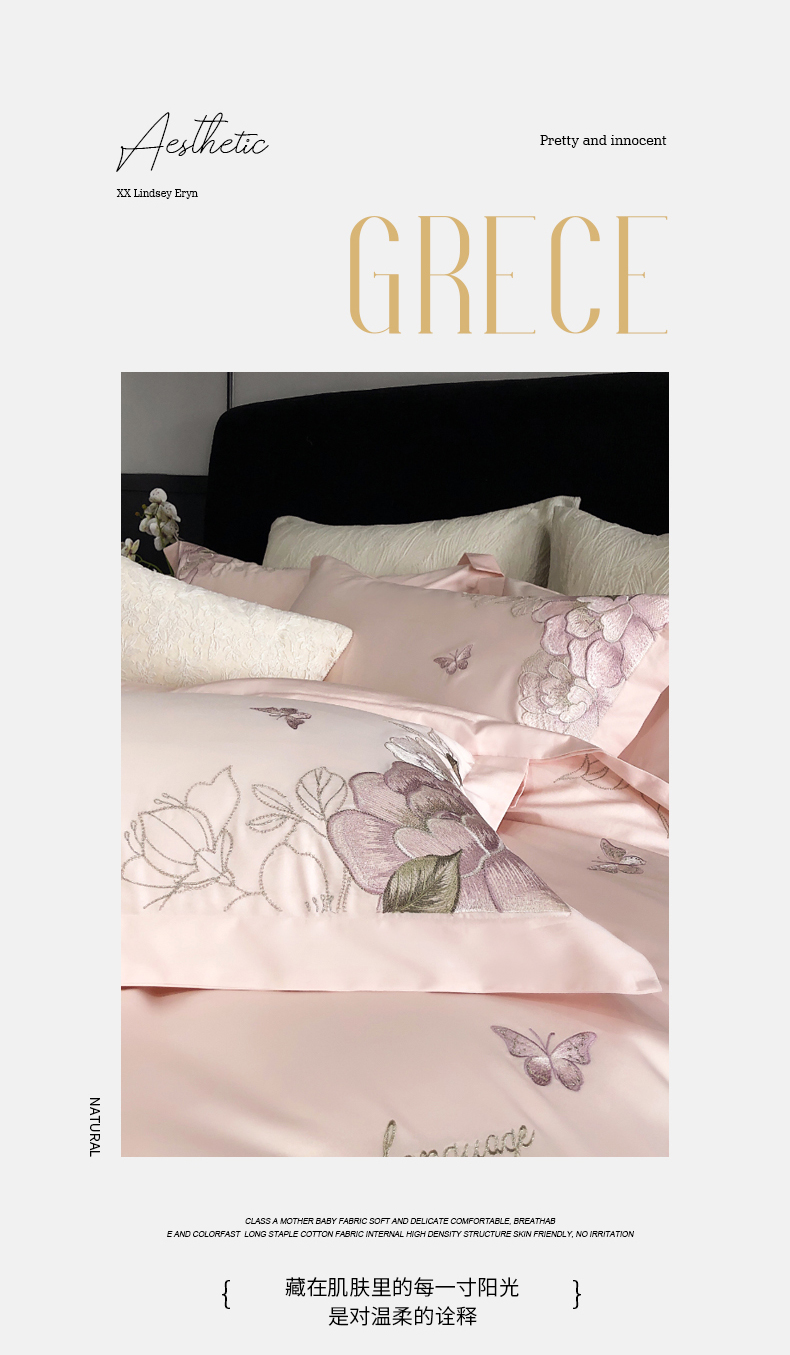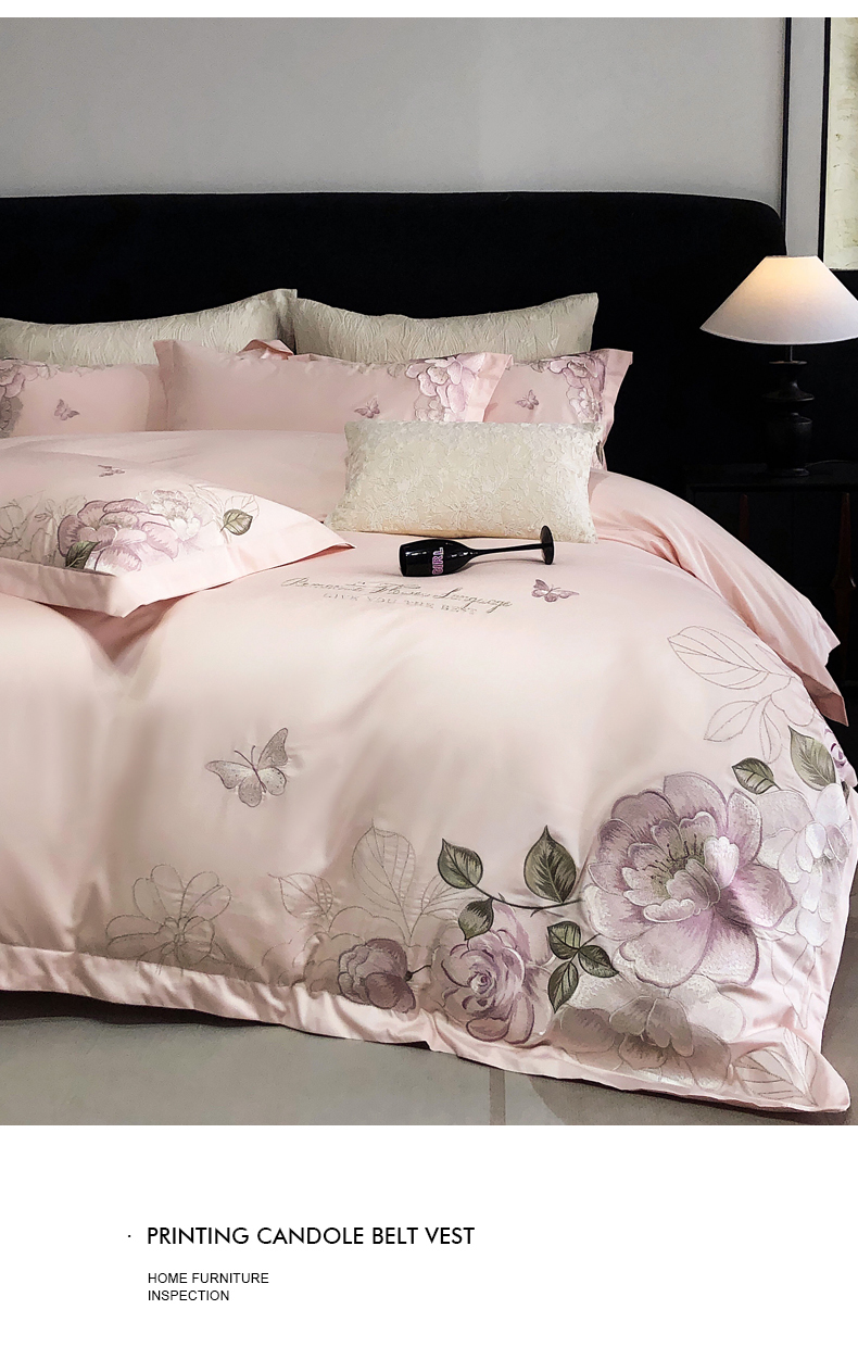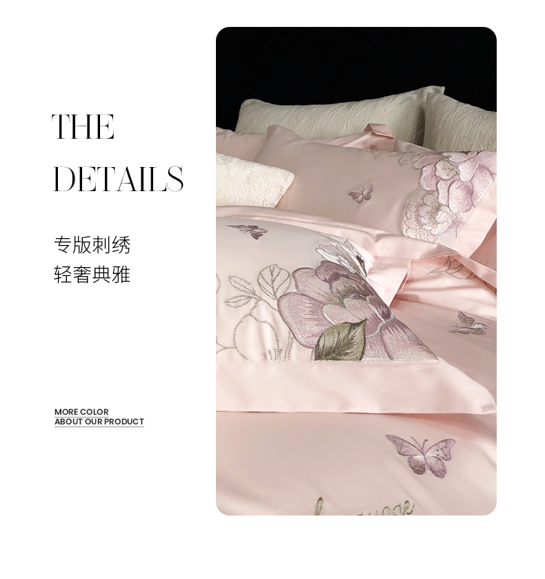 商品名称:2025新款全棉50s绣花刺绣款四件套 花拾-粉