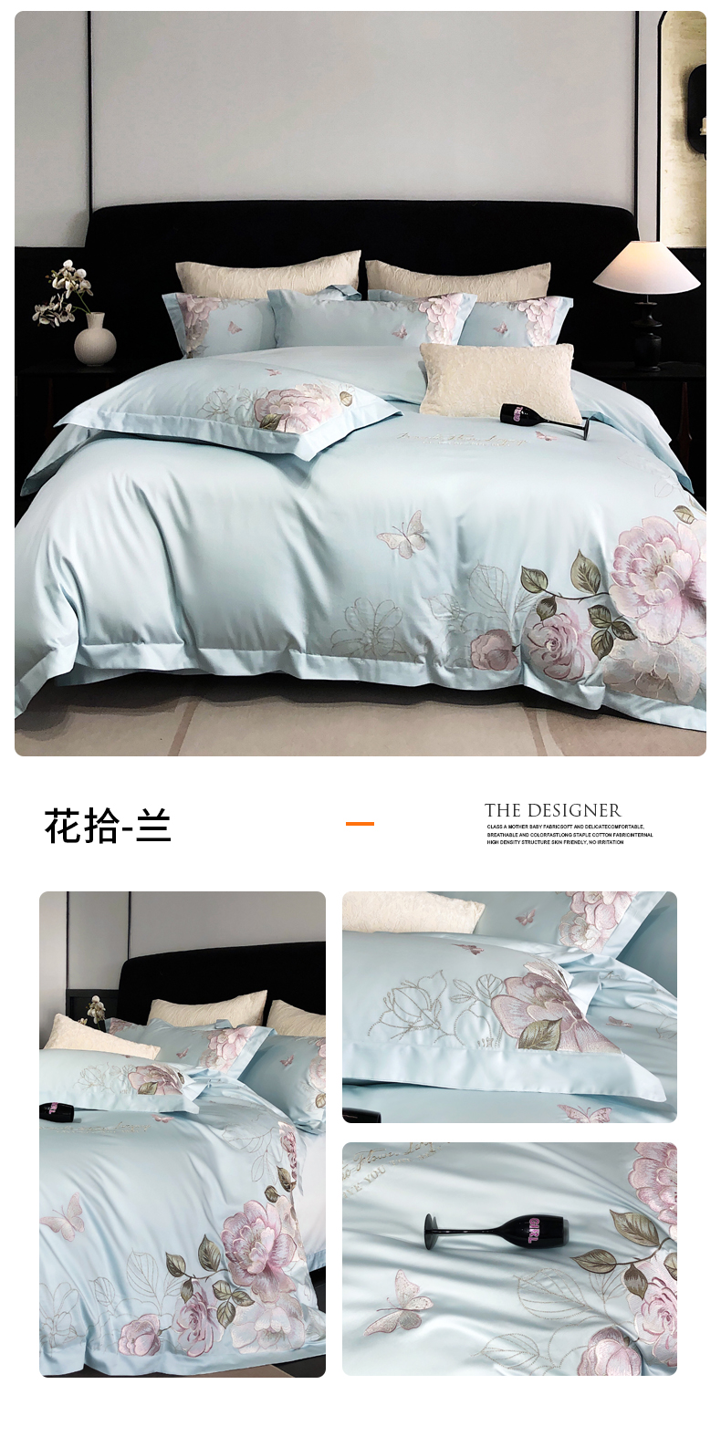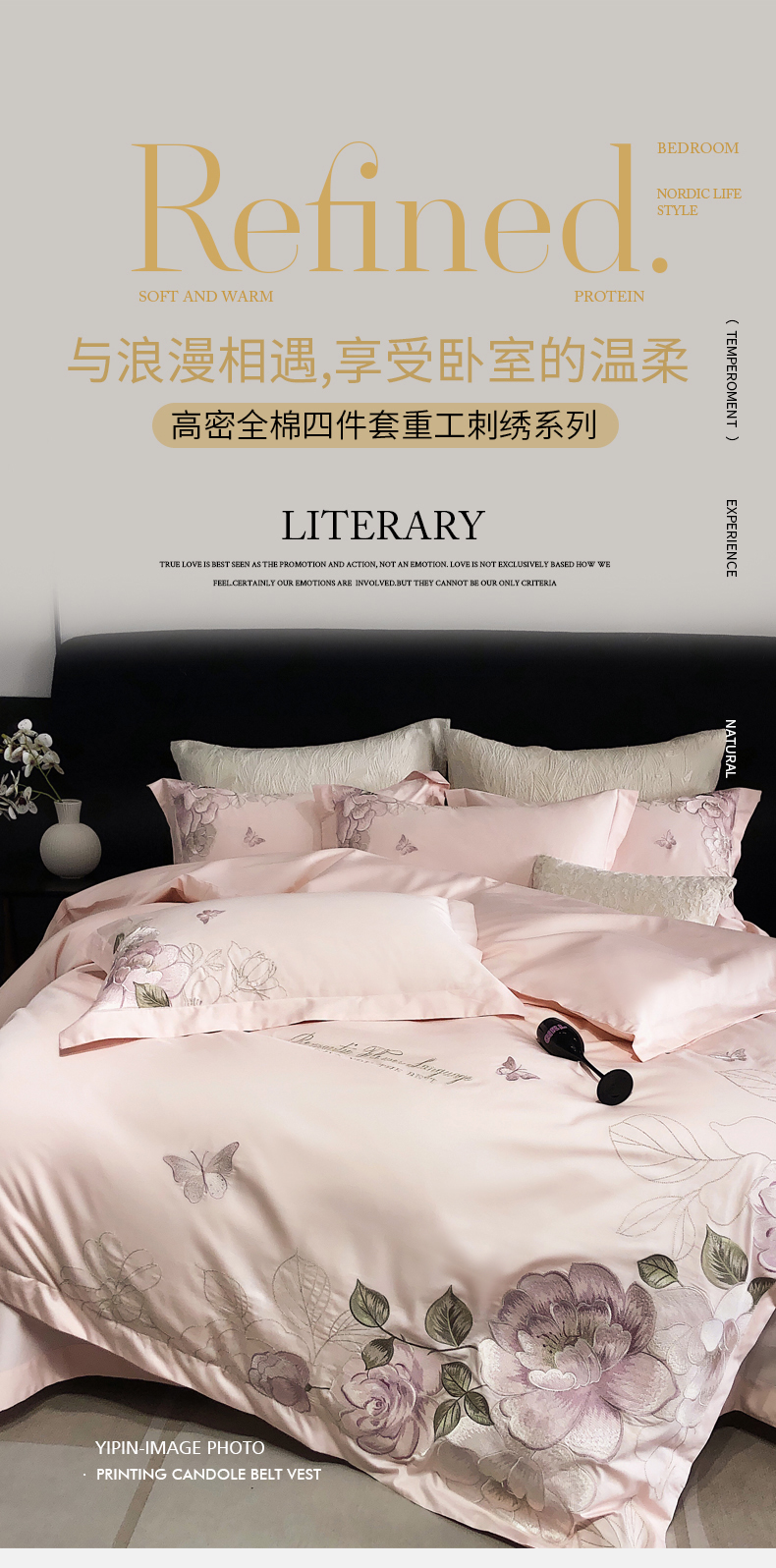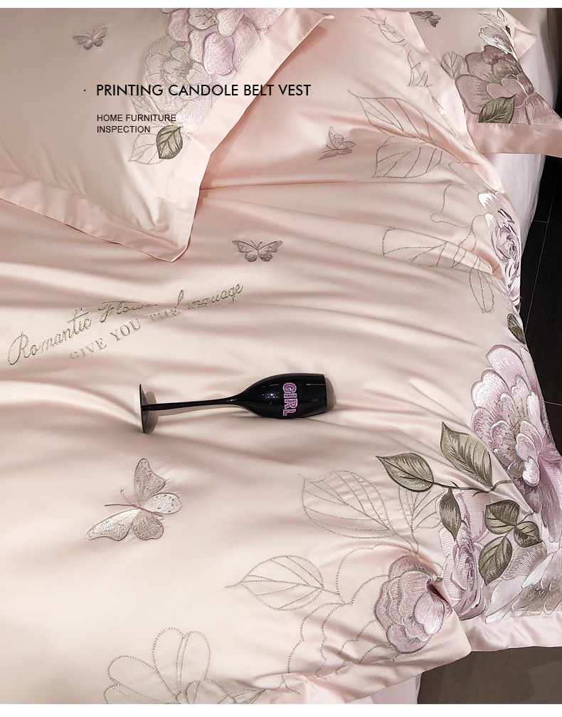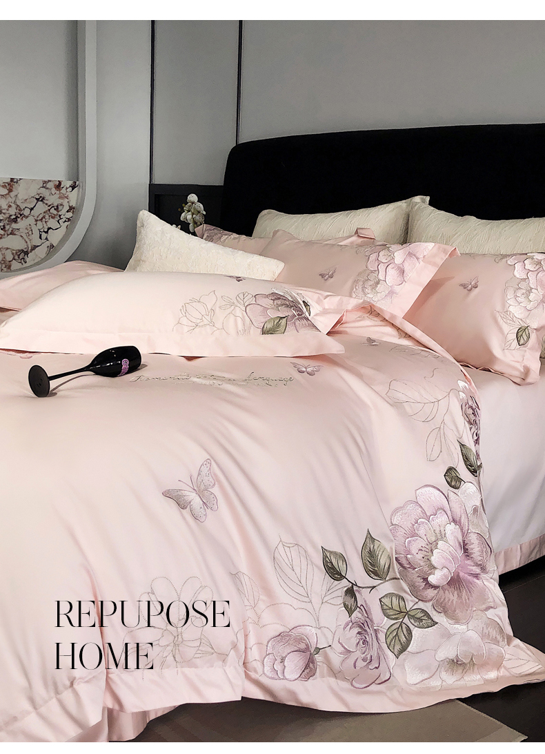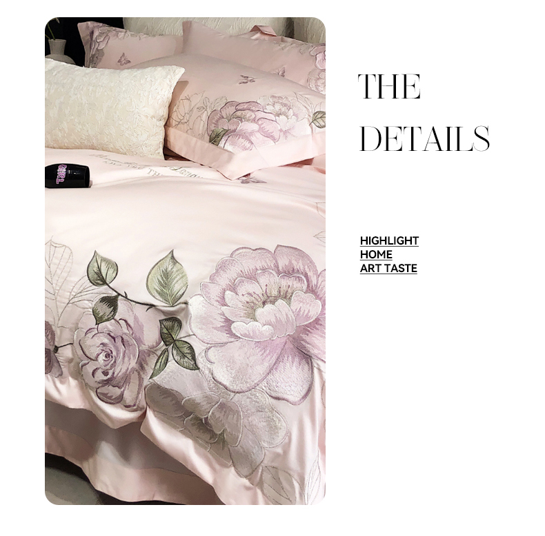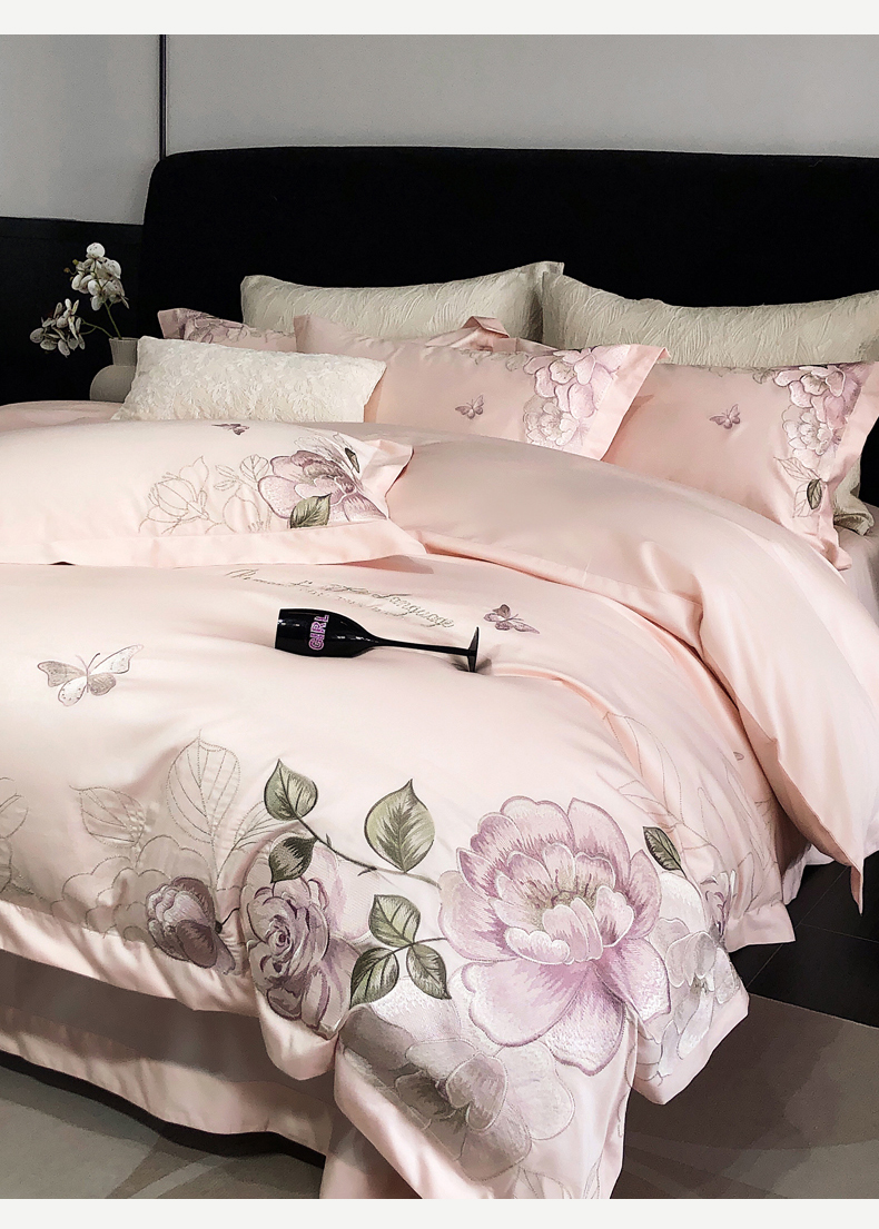 2025新款全棉50s绣花刺绣款四件套 花拾-粉