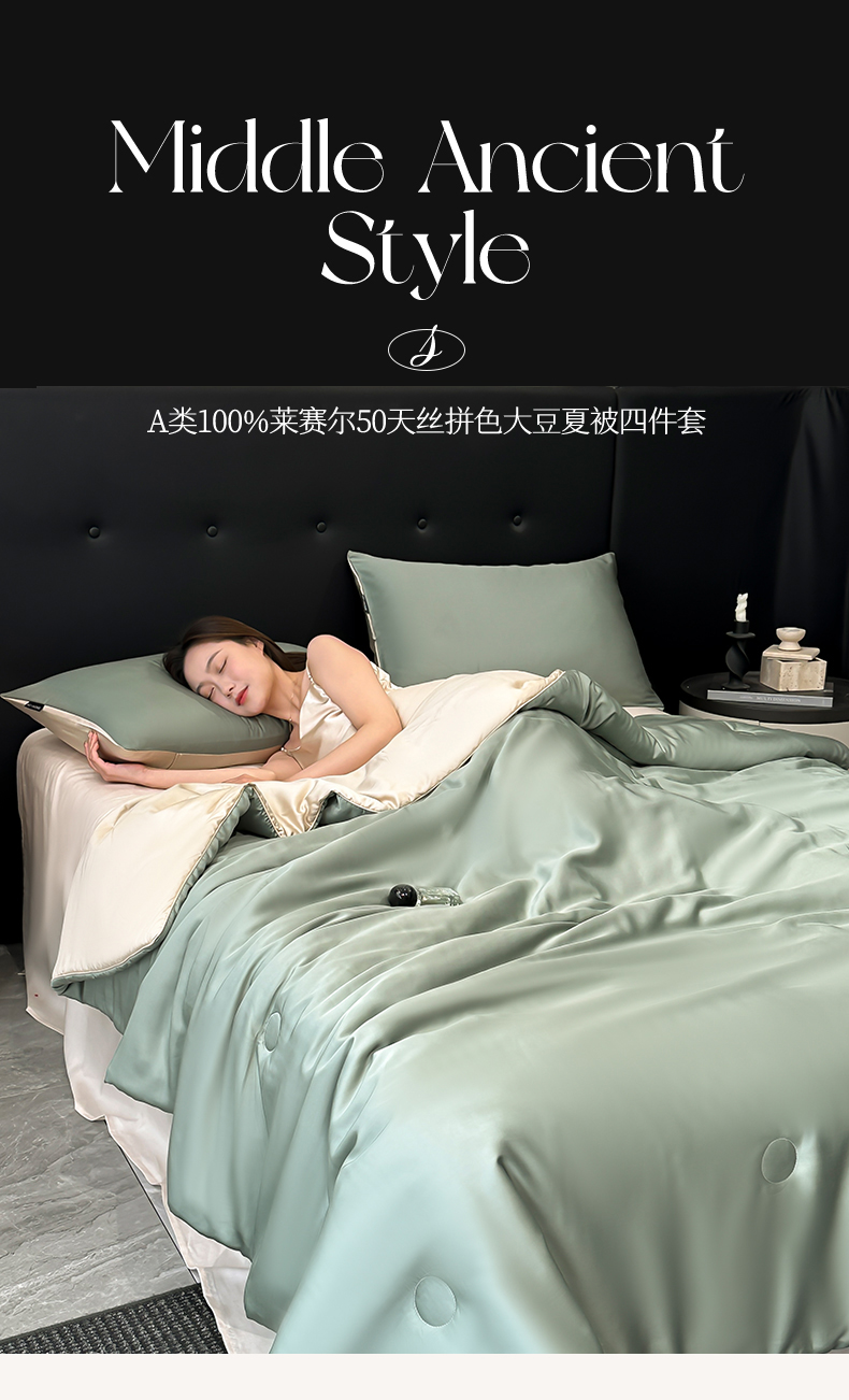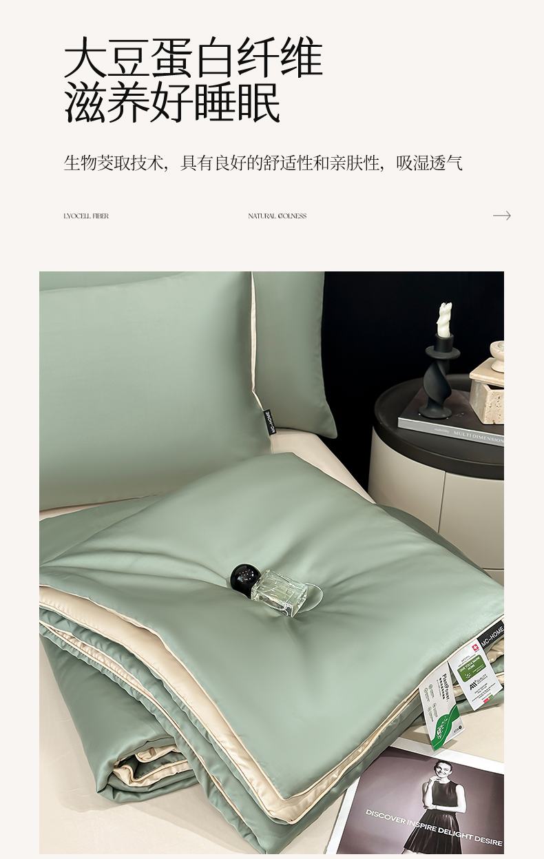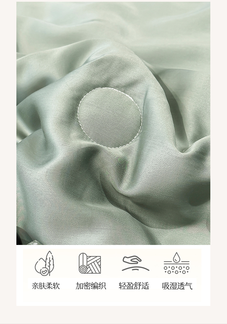 当前位置: 91家纺网 > 商品网购 > 床品套件 > 四件套 > 夏被四件套 > 金鹰 2025新款A类莱赛尔50天丝拼色空调被大豆夏被四件套 翡翠绿