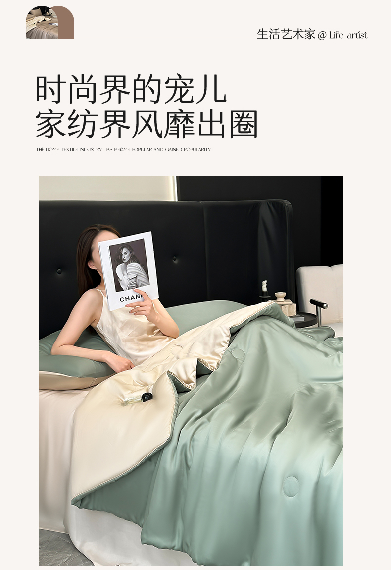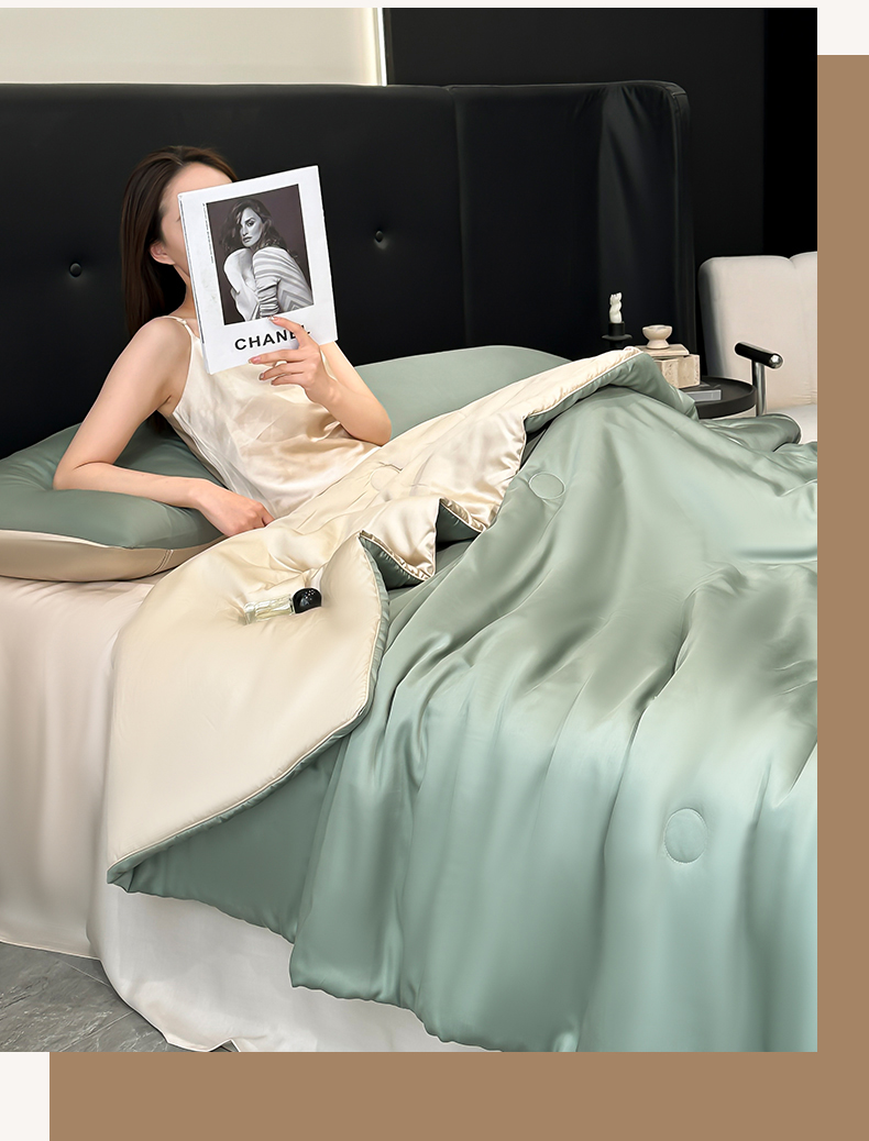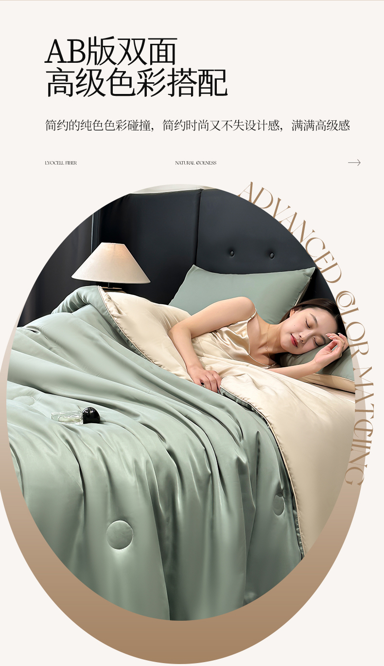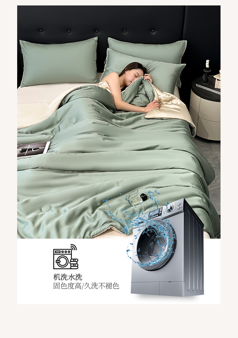 当前位置: 91家纺网 > 商品网购 > 床品套件 > 四件套 > 夏被四件套 > 金鹰 2025新款A类莱赛尔50天丝拼色空调被大豆夏被四件套 翡翠绿