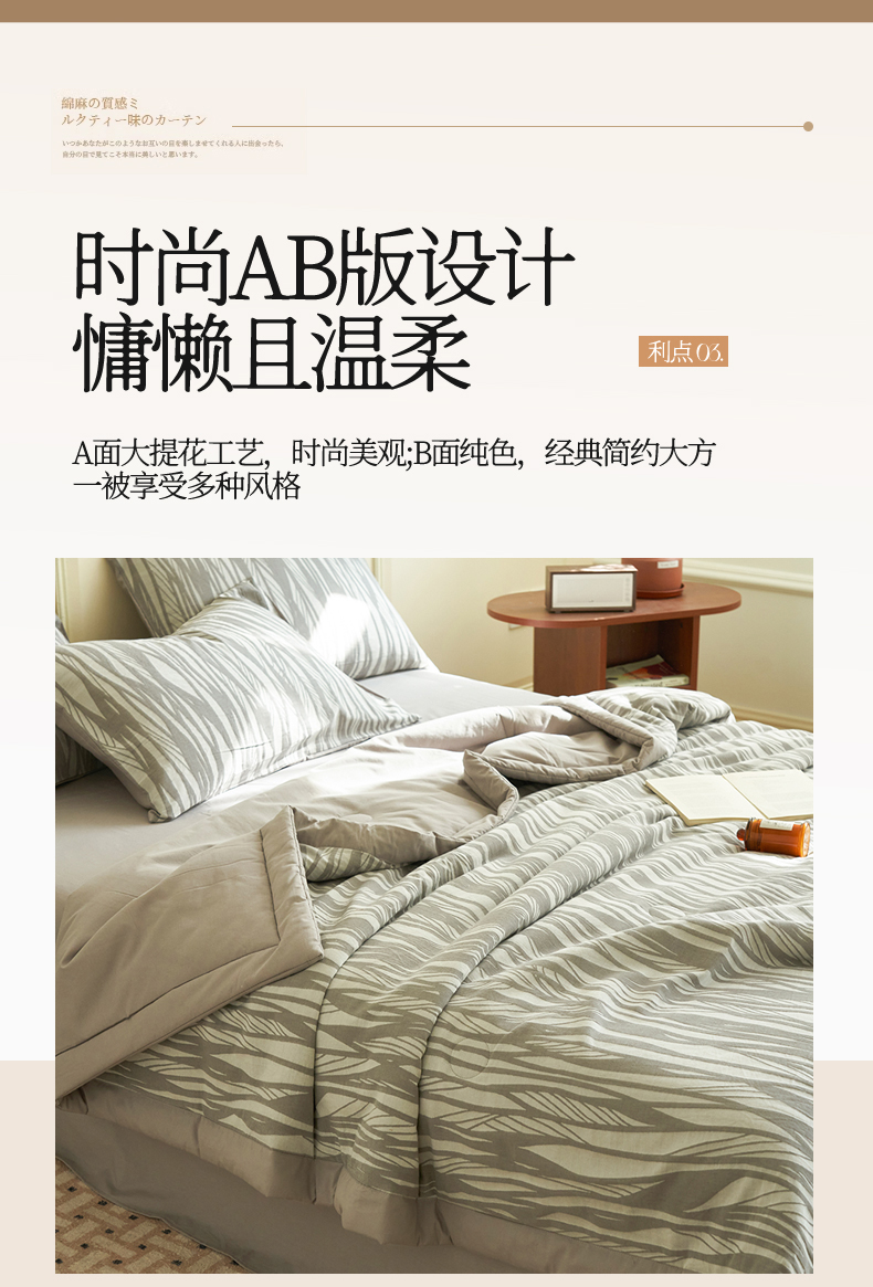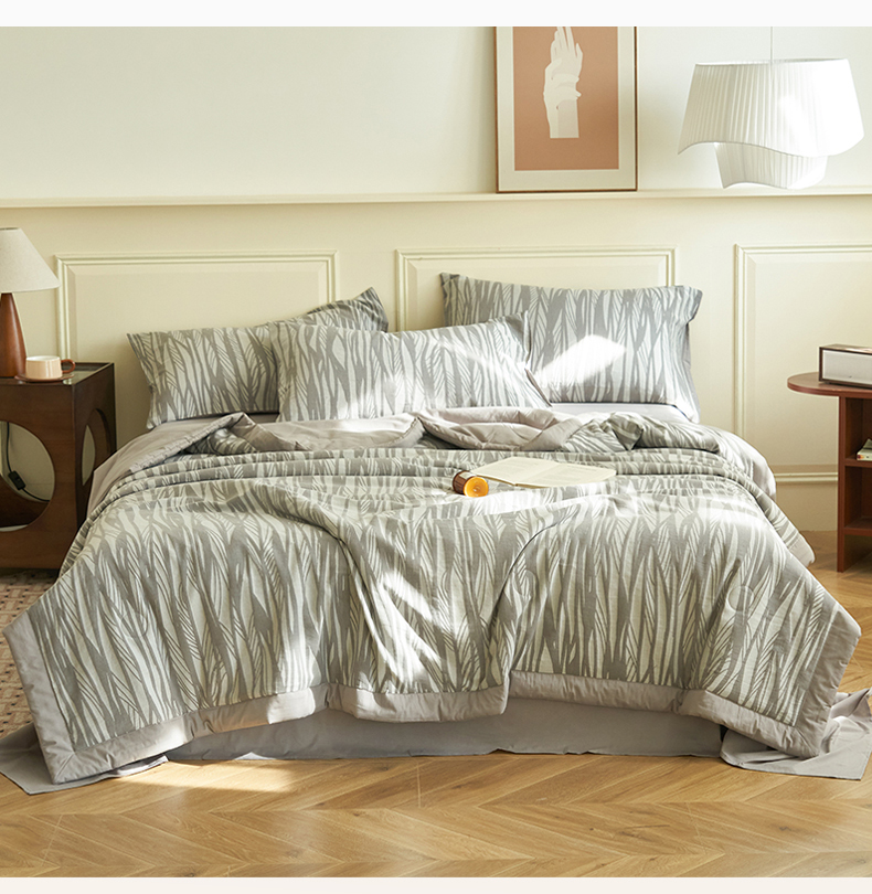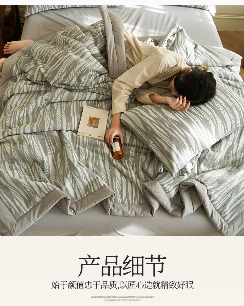 当前位置: 91家纺网 > 商品网购 > 床品套件 > 四件套 > 全棉普通四件套 > 金鹰 2025新款A类纯棉提花水洗棉全棉空调被大豆夏被四件套 条纹-暗灰