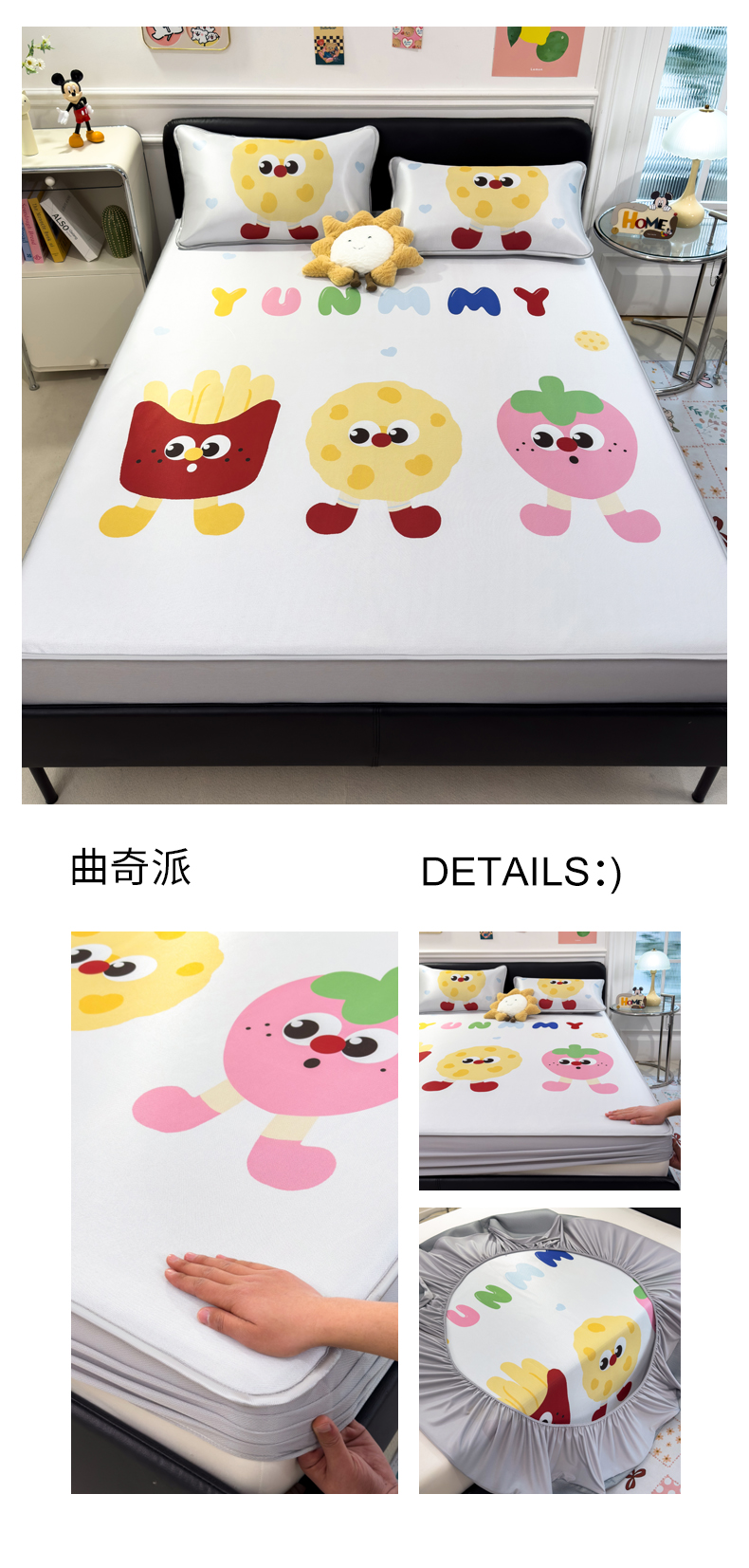 商品名称:丝羽坊 2025新款大版印花冰丝凉席冰丝席碳光冰丝凉席-床笠款 曲奇派