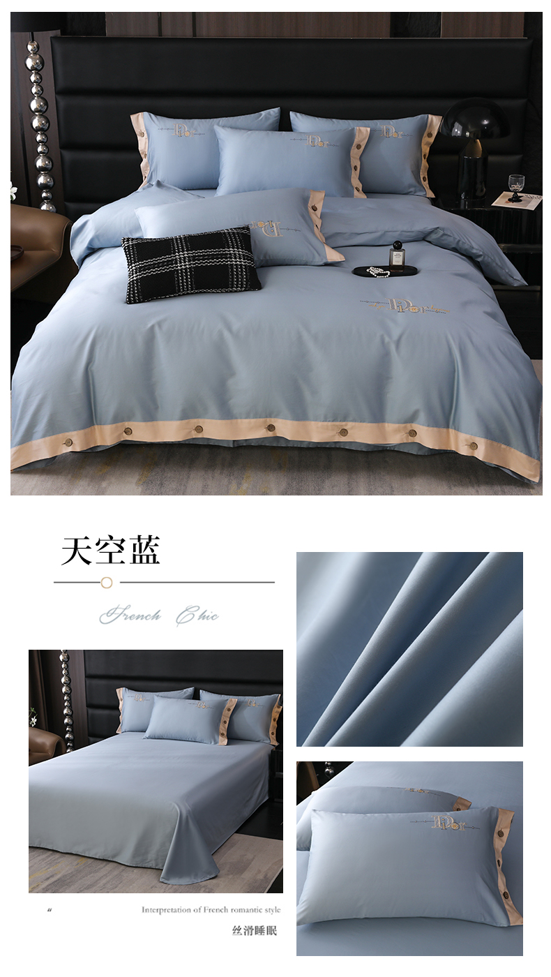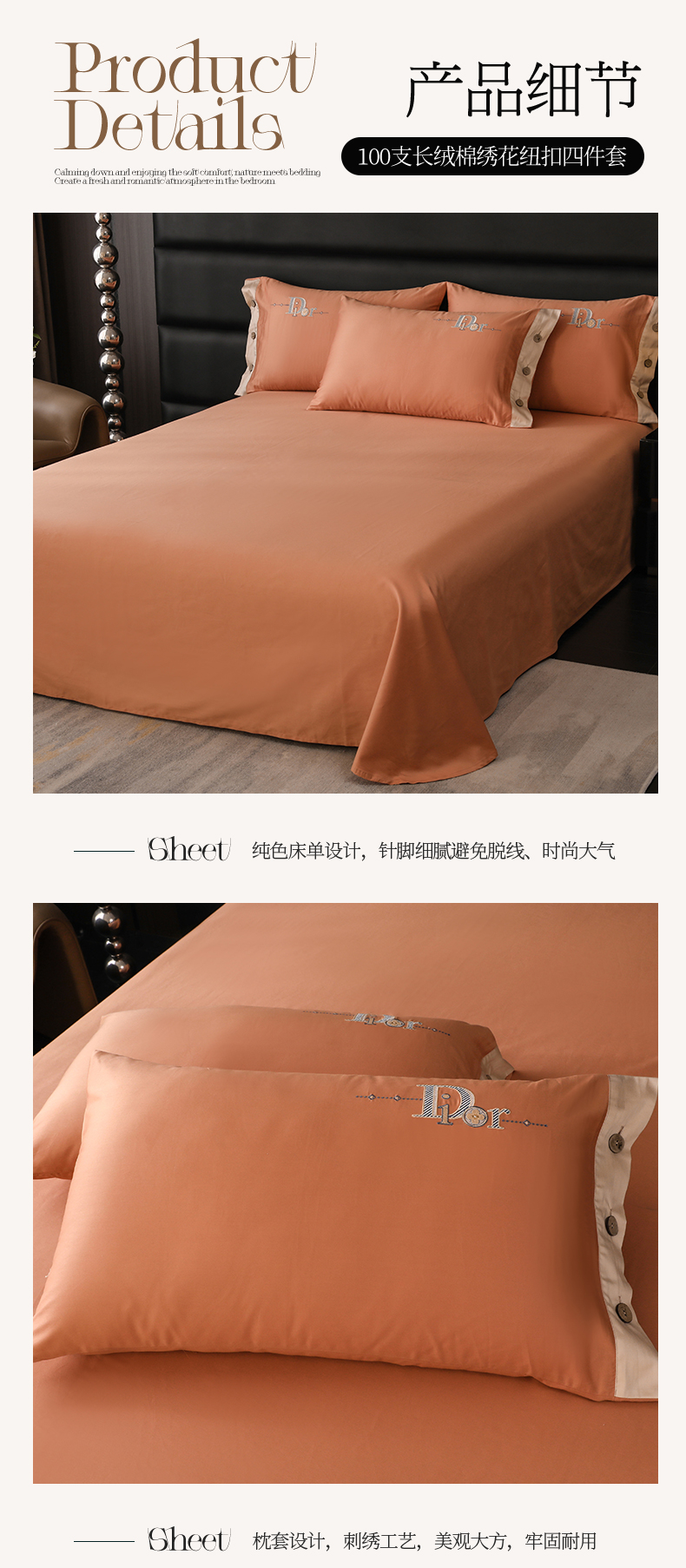 (总)暖洋 2025新款100支长绒棉绣花纽扣款四件套长绒棉四件套全棉四件套【礼盒包装】,宾利蓝,米杏,暖桔,天空蓝,香槟金,月光灰,竹玉粉
