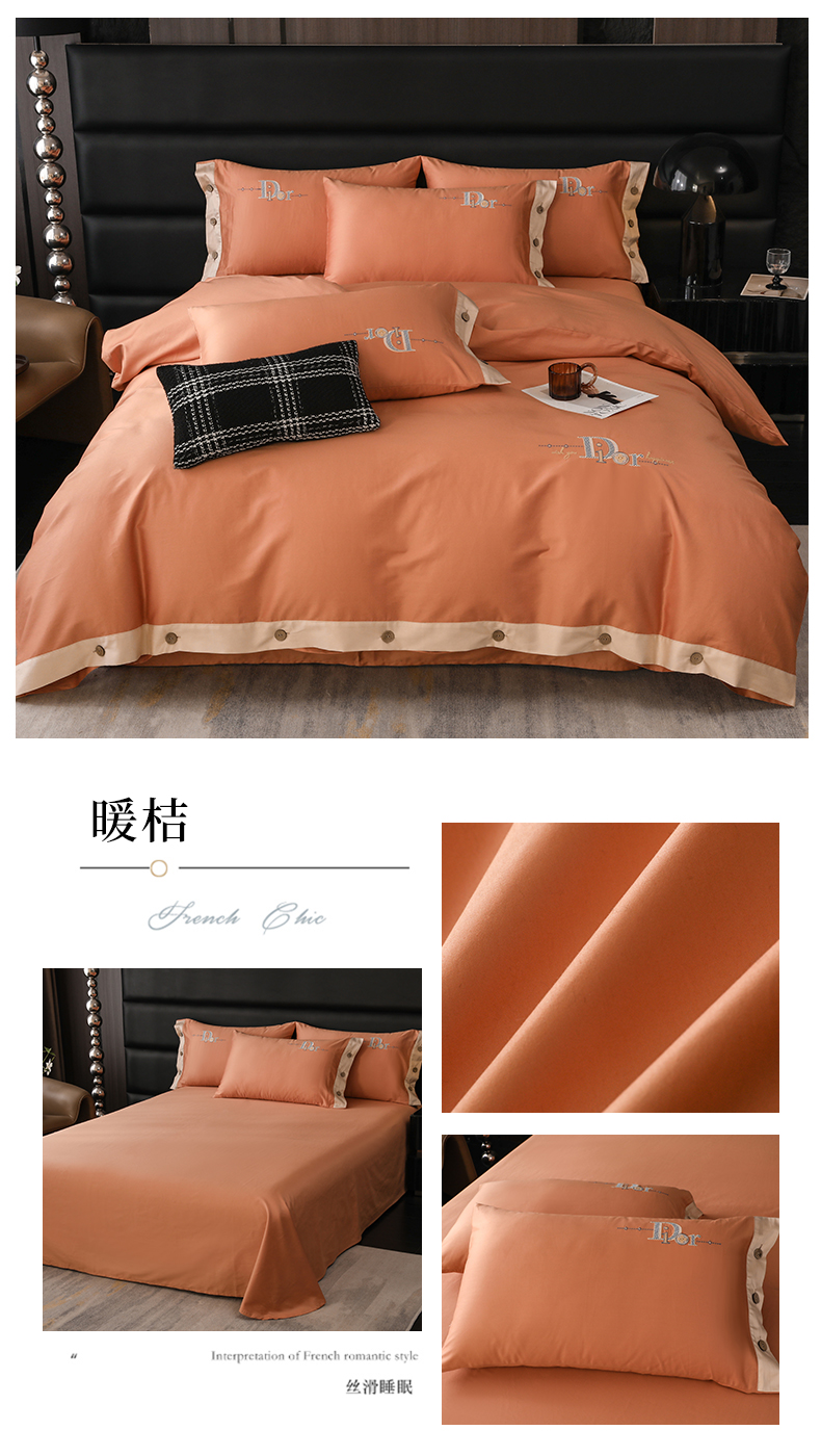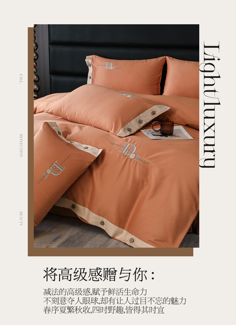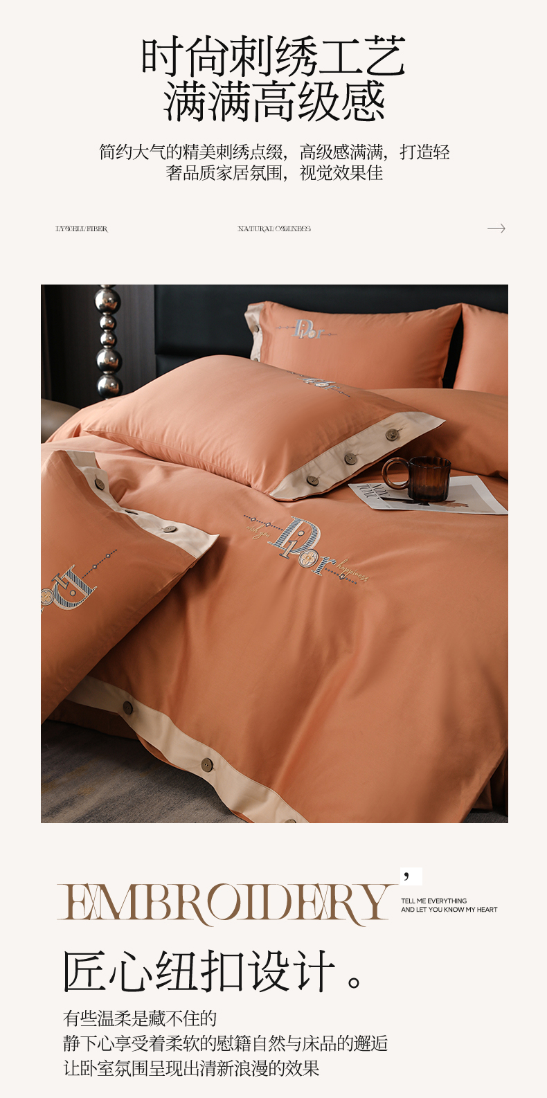 (总)暖洋家纺 2025新款暖芙绒纯色刺绣款套件四件套,爱玛橙,银灰色,香槟色,杏仁,玉色,湖绿色,蓝灰