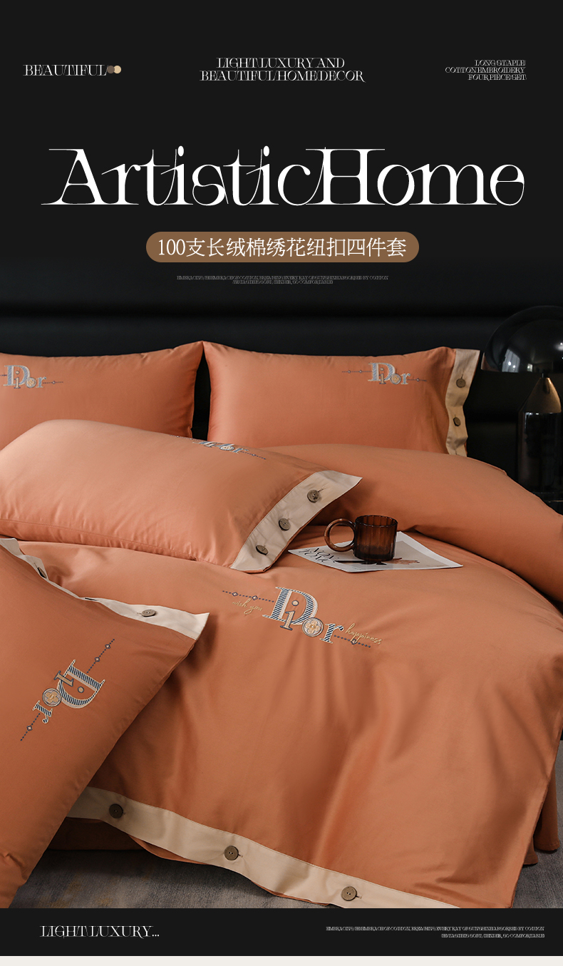 商品名称:(总)暖洋 2025新款100支长绒棉绣花纽扣款四件套长绒棉四件套全棉四件套【礼盒包装】