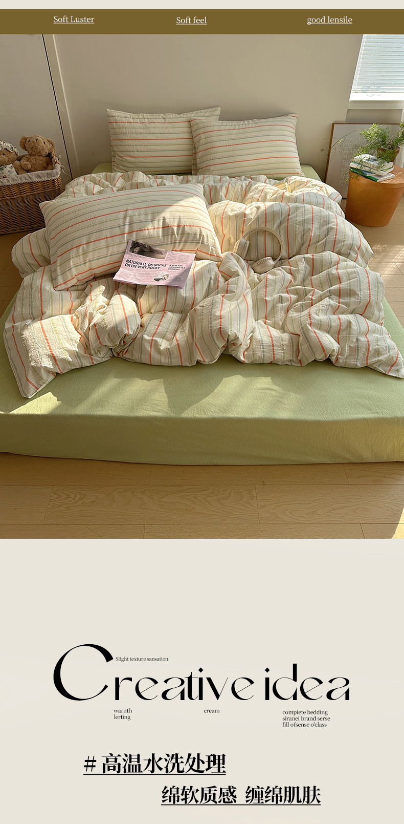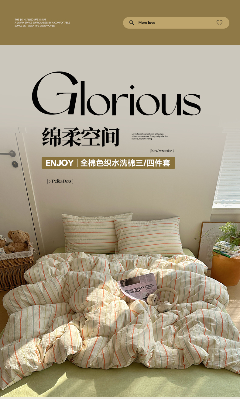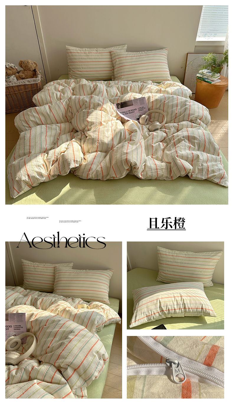 当前位置: 91家纺网 > 商品网购 > 床品套件 > 四件套 > 水洗棉四件套 > 艾咪-Amy ntmy 2025新款条纹款全棉色织水洗棉四件套 且乐橙