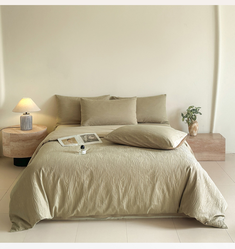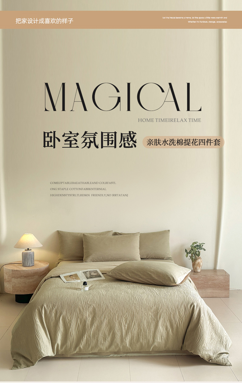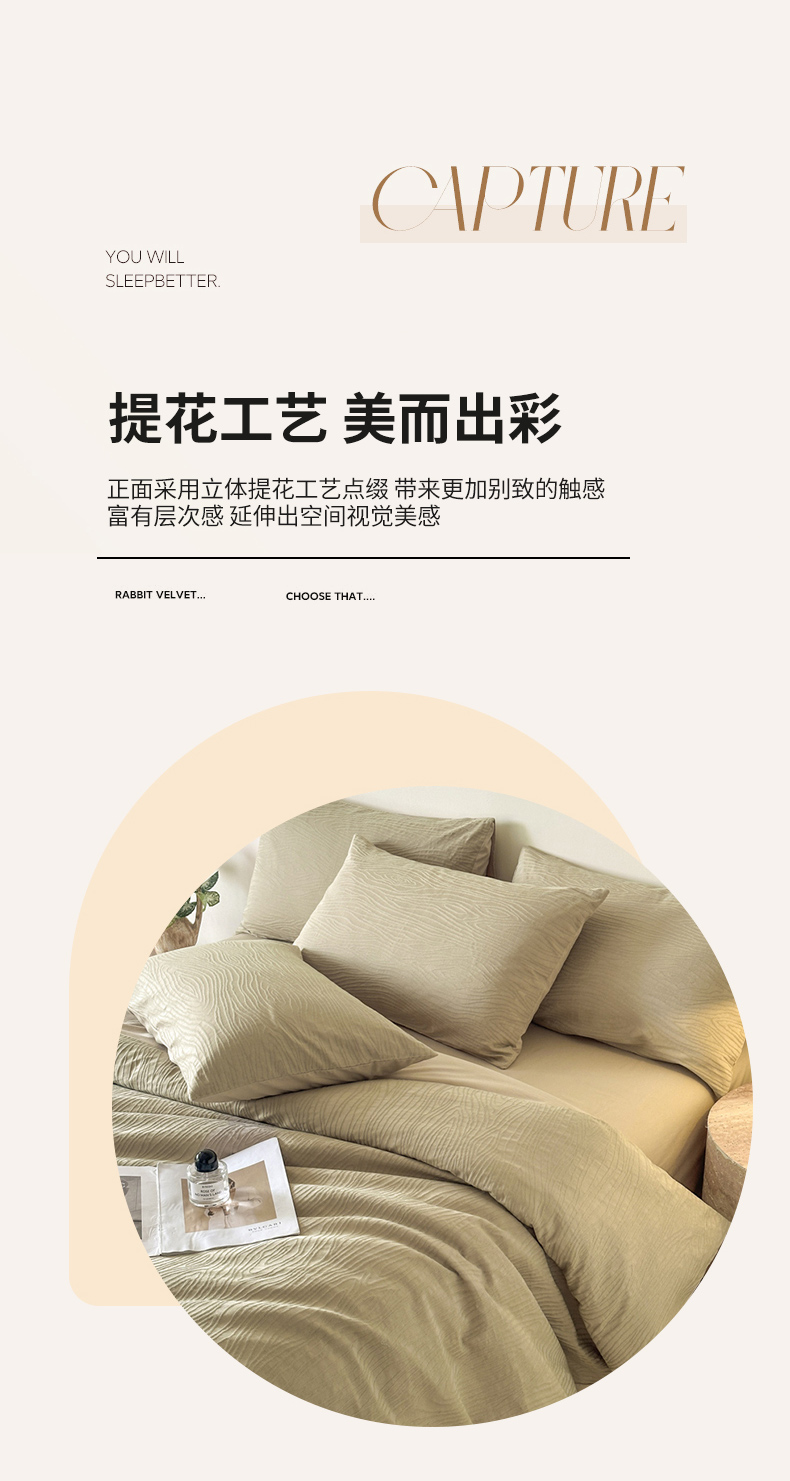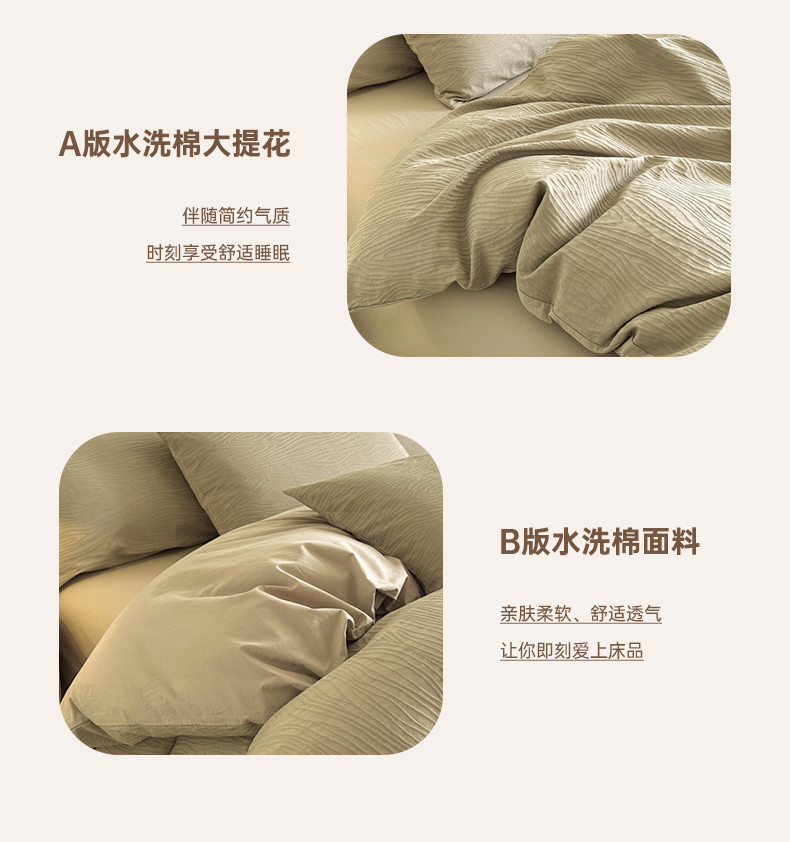 当前位置: 91家纺网 > 商品网购 > 床品套件 > 四件套 > 提花四件套 > 欣晴家纺 2025新款亲肤水洗棉简约大提花四件套 米驼