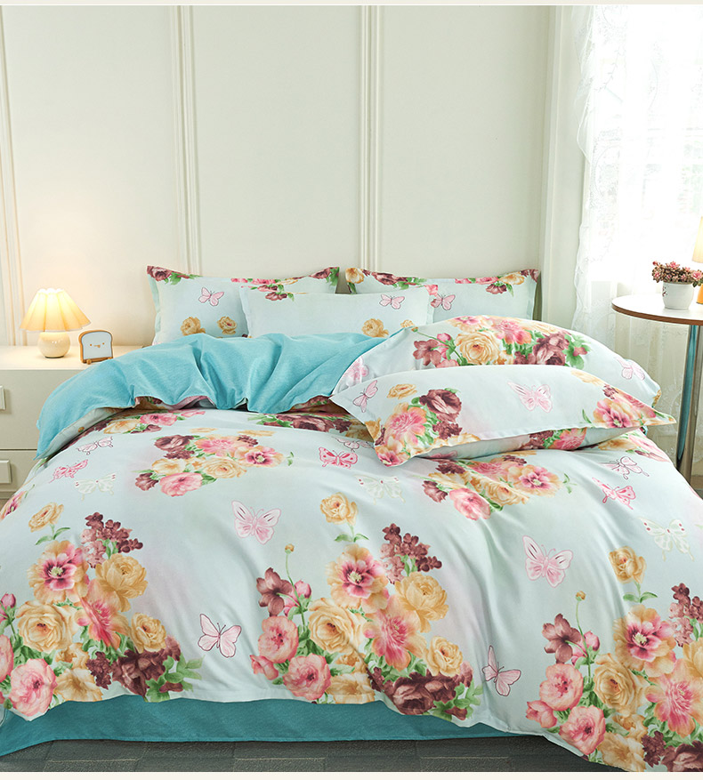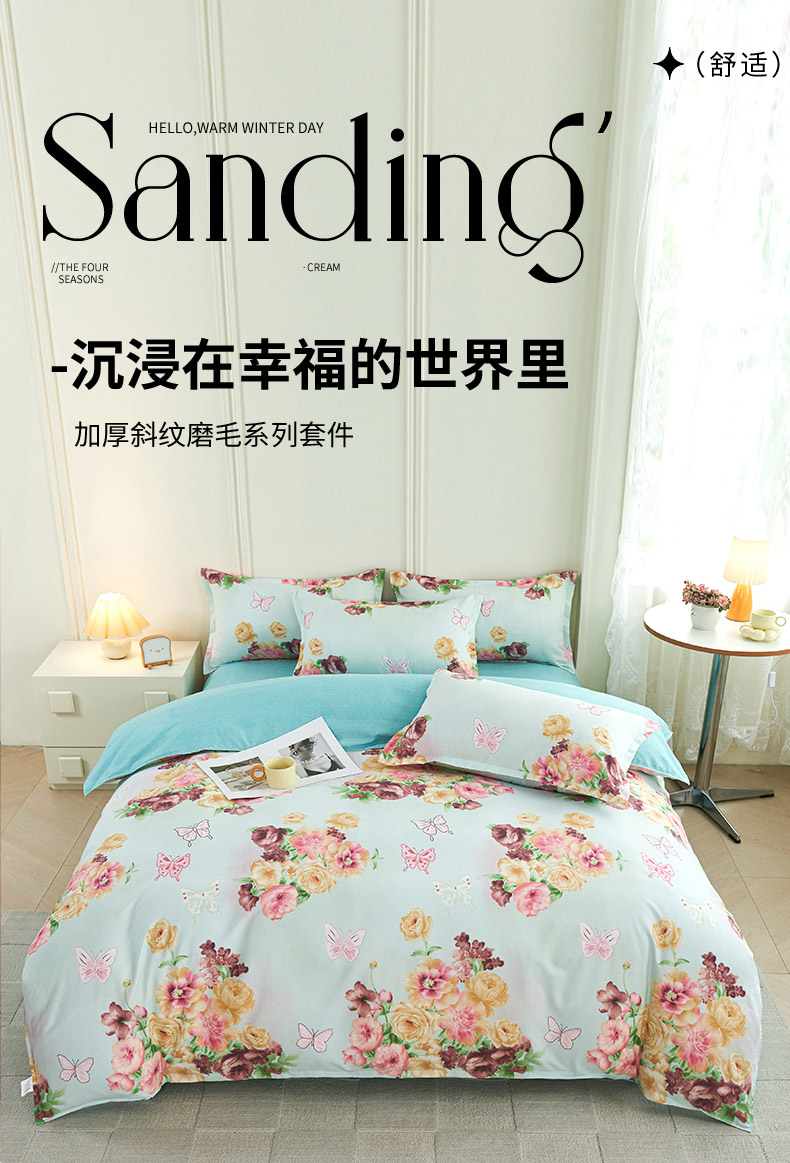 商品名称:爱诗诺2025加厚生态棉磨毛四件套高克重植物羊绒四件套大量现货花丛倩影