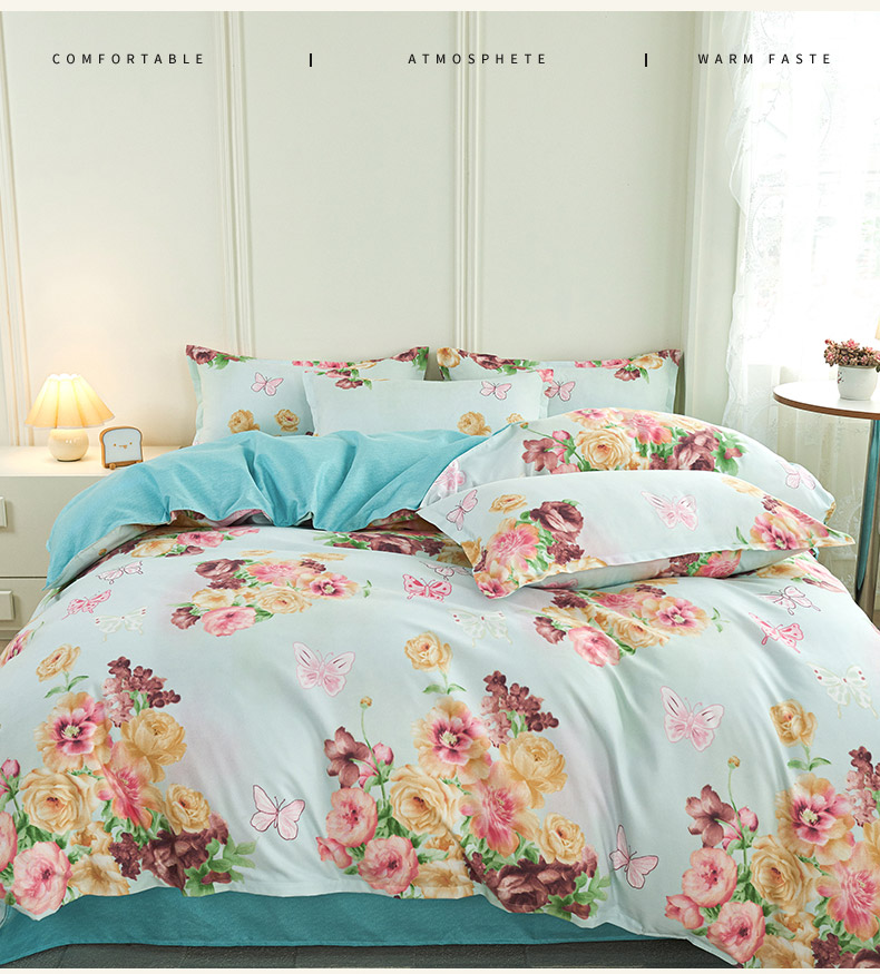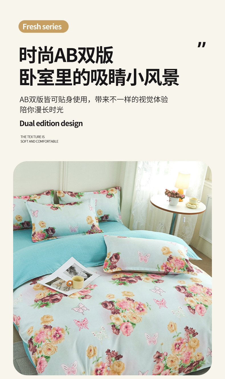 爱诗诺2025加厚生态棉磨毛四件套高克重植物羊绒四件套大量现货花丛倩影