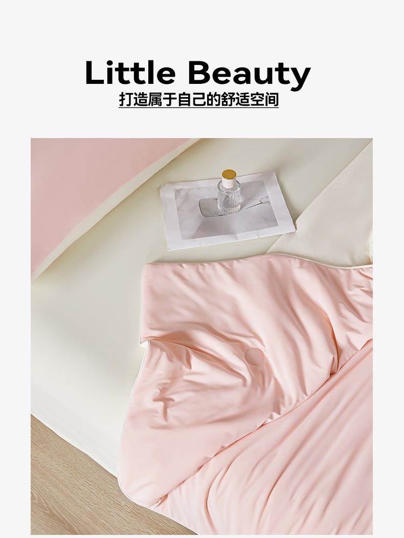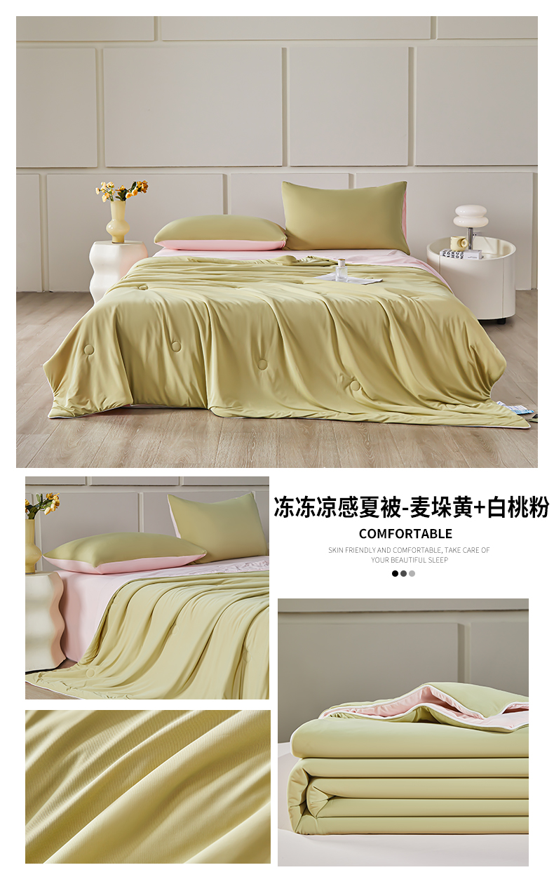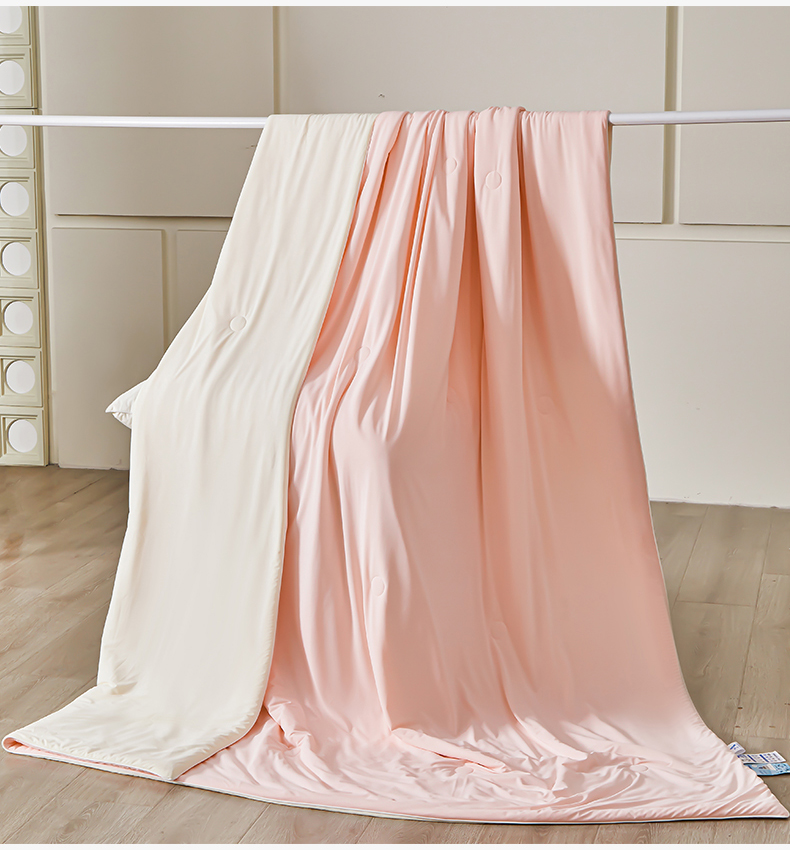 • 91家纺网 家纺一手货源 找家纺 雯豆家纺 2025夏季新品7A抗菌氨纶凉感丝夏凉被冰丝双人抑菌薄款透气薄被芯 冻冻凉感夏被-烟霞粉+梅子青