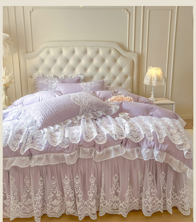 当前位置: 91家纺网 > 商品网购 > 床品套件 > 四件套 > 其它四件套 > 恋尚 2025新款木凉淳浪漫蕾丝床裙四件套-米朵 米朵-香芋紫