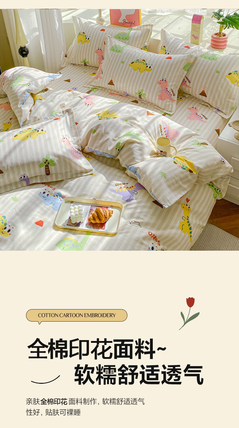商品名称:2025新款亲肤舒适全棉印花单床单系列 动漫恐龙