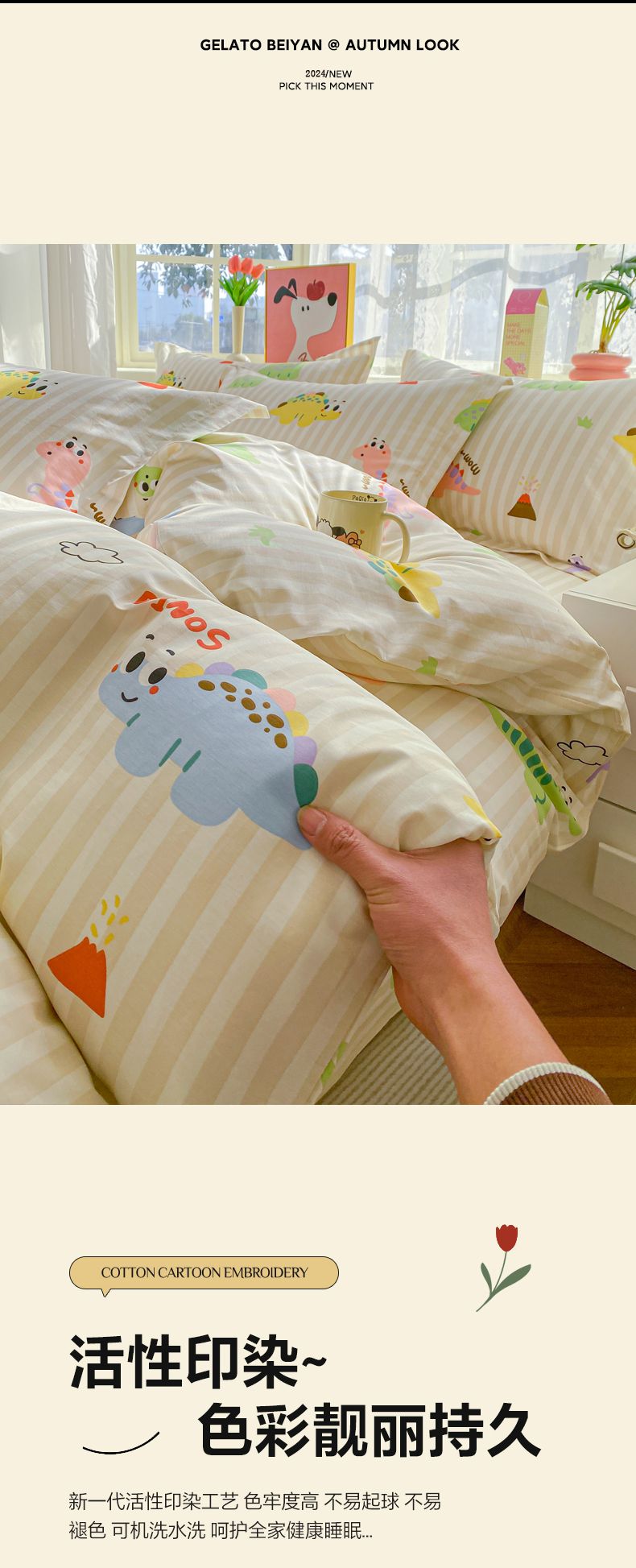 (总)买家秀热款花型不断货 母婴级A类ins风水洗棉四件套水洗棉毛巾绣四件套水洗棉床笠四件套提花绣花四件套,恐龙宝贝,花朵兔兔,面包小狗,奶油小甜甜,奶油芝士,兔伙伴,樱桃兔,优雅