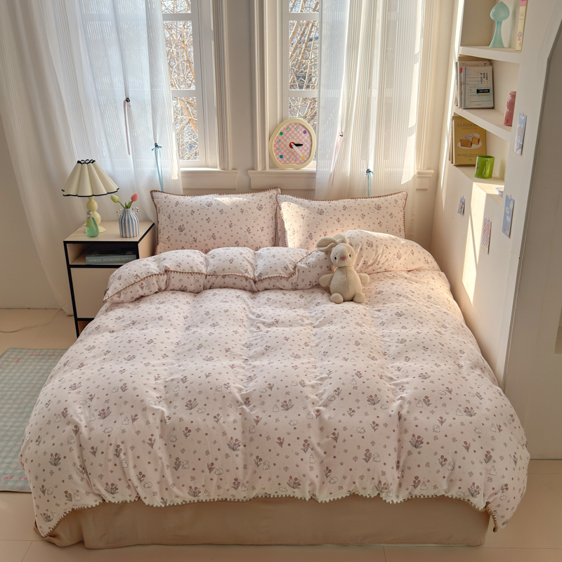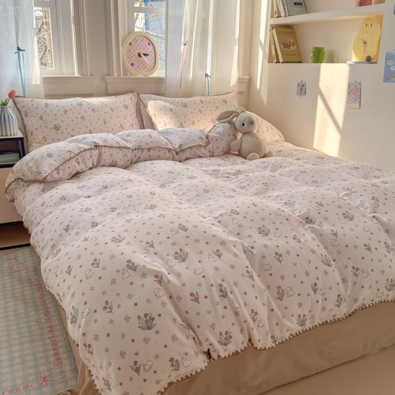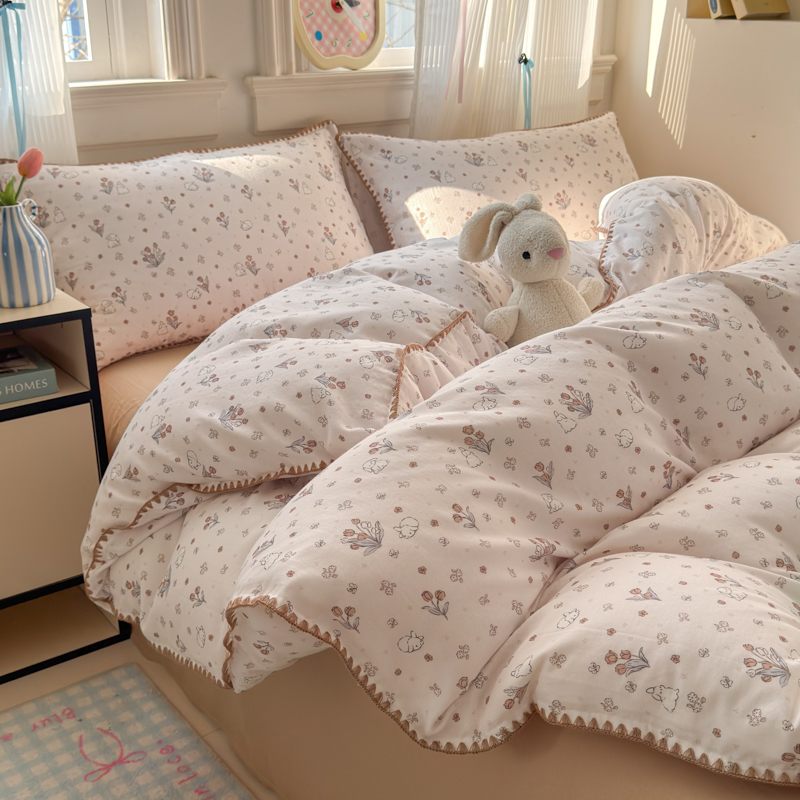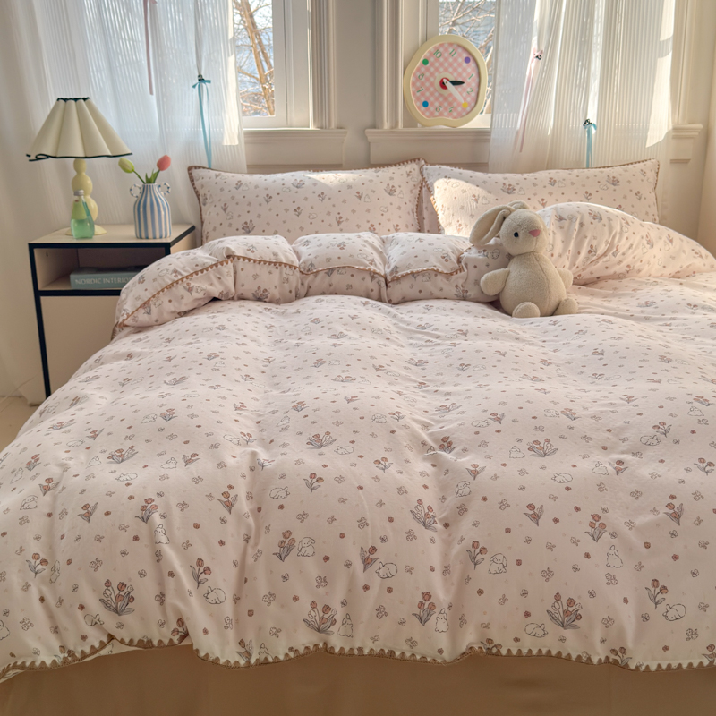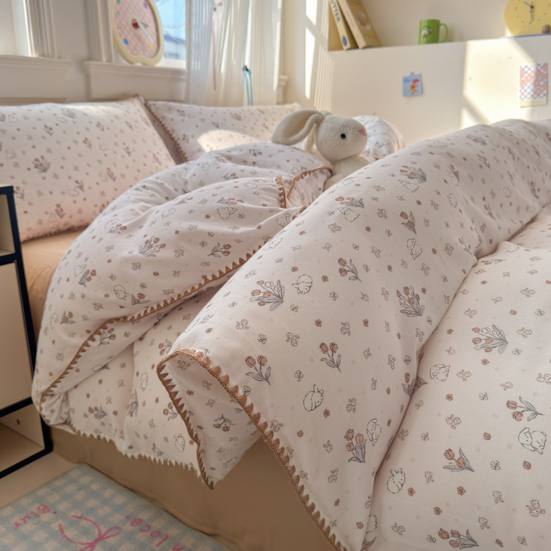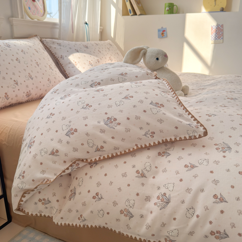 当前位置: 91家纺网 > 商品网购 > 床品套件 > 四件套 > 双层纱四件套 > 淑女公社家纺 2025春夏新款 贝壳边双层纱套件 花野兔