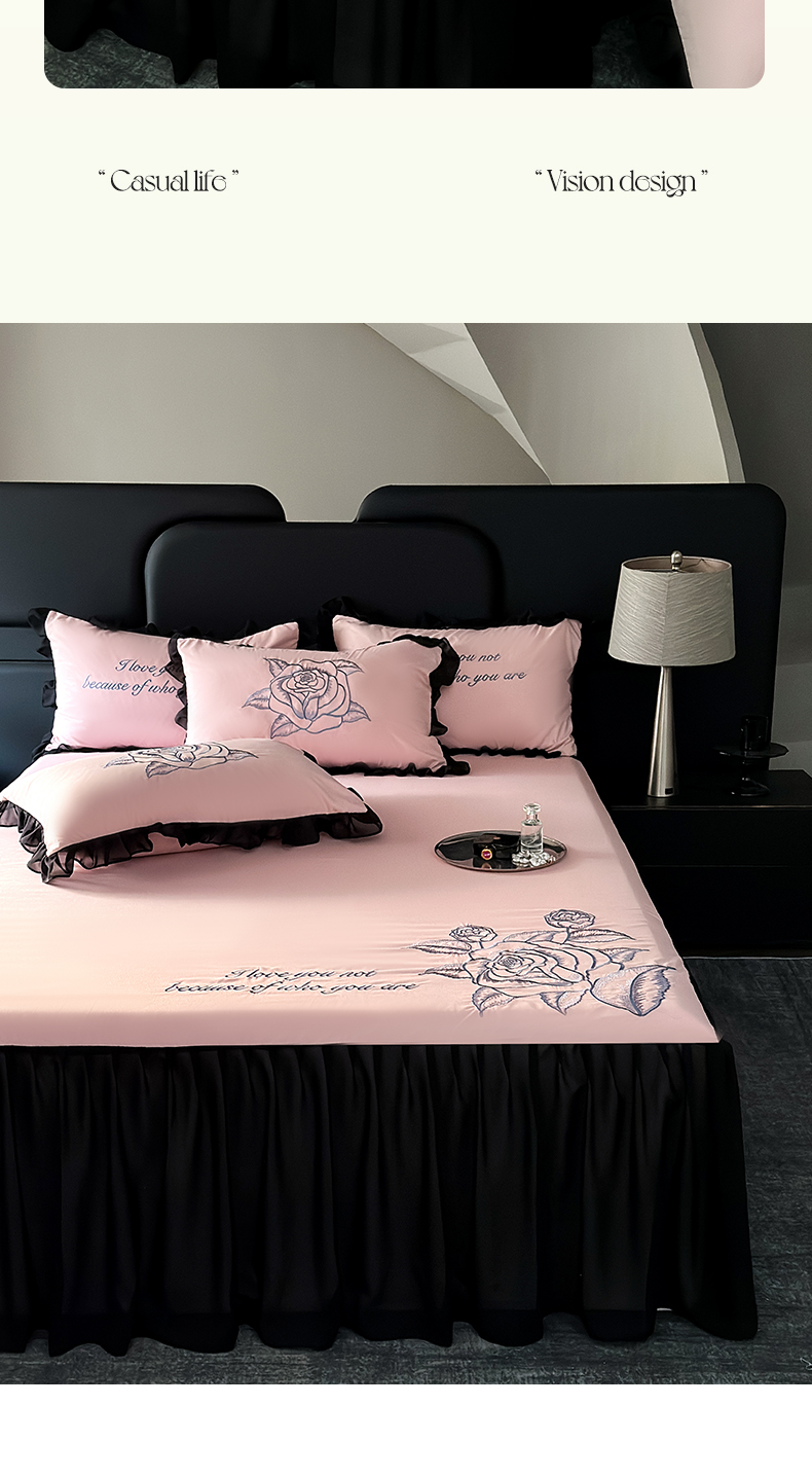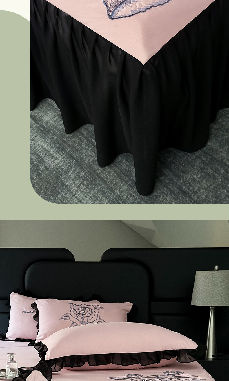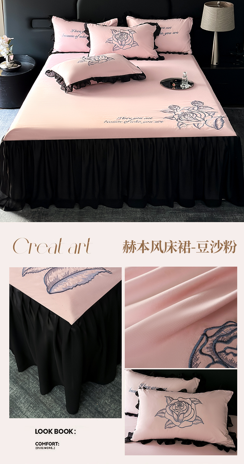 豪美鑫 2025新款赫本风亲肤棉花边单床裙 赫本风床裙-豆沙粉