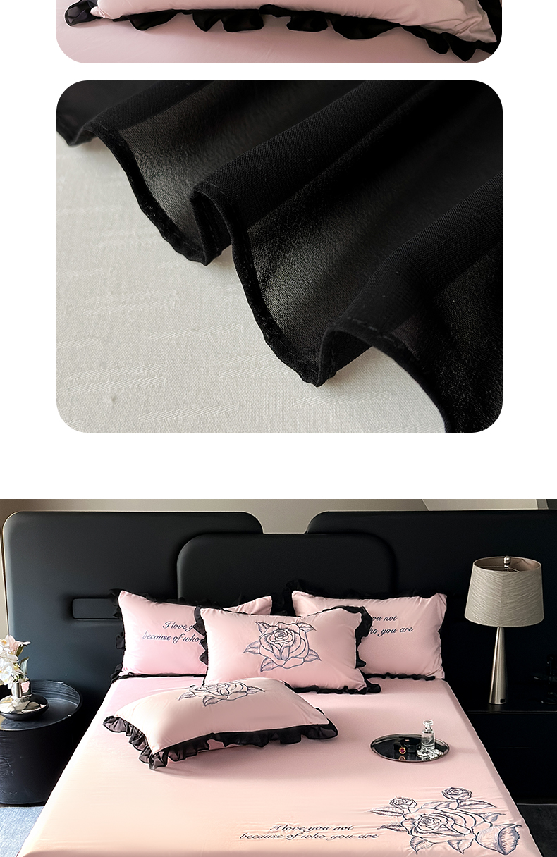 (总)豪美鑫 2025新款牛奶绒波点刺绣花边四件套-波尔卡系列,黑色波尔卡-卡其色,黑色波尔卡-奶白,黑色波尔卡-香槟色,红色波尔卡-卡其色,红色波尔卡-奶白,红色波尔卡-香槟色