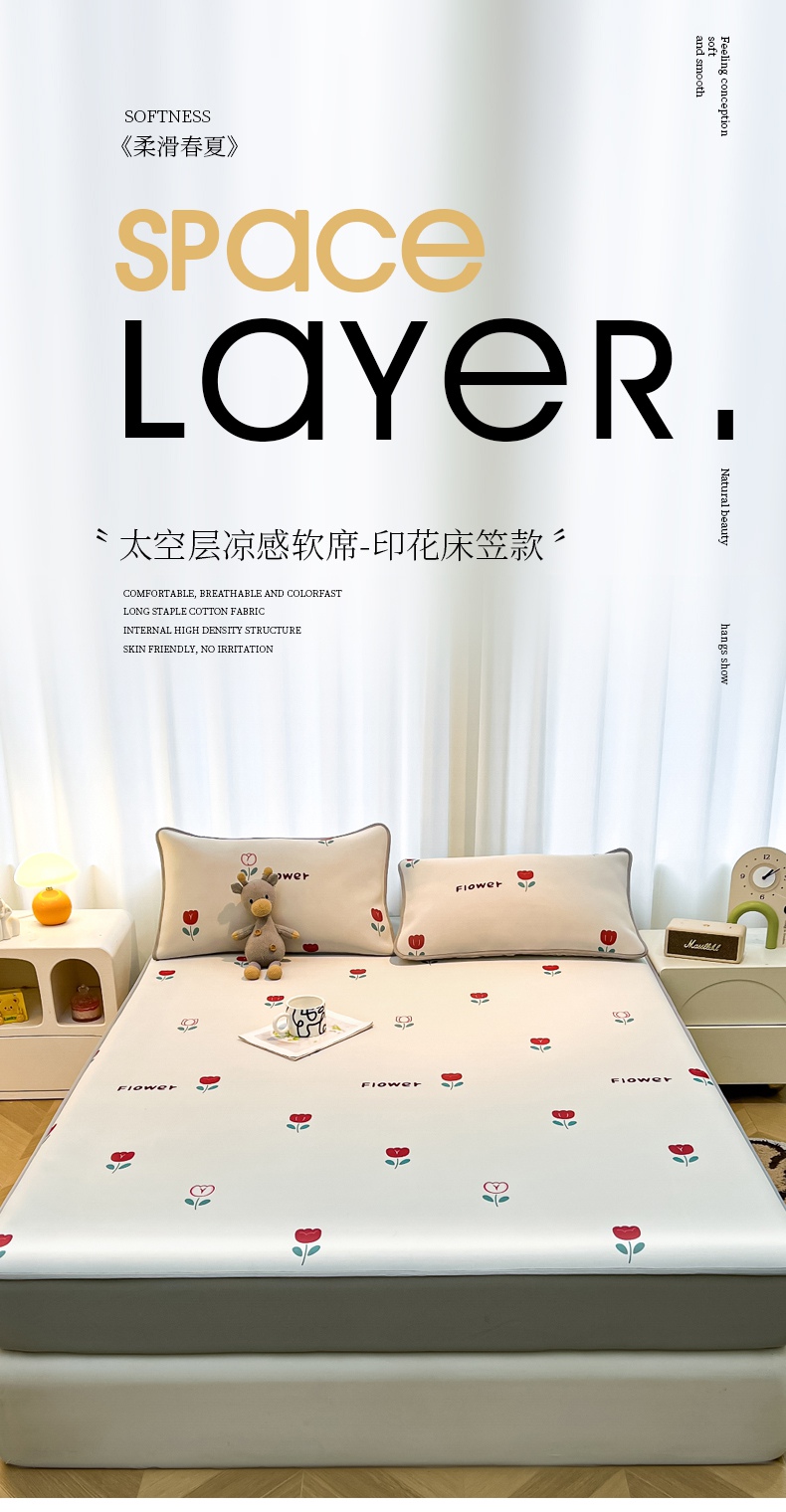 当前位置: 91家纺网 > 商品网购 > 床上用品 > 凉席 > 其他凉席 > 2025春夏新款独家研发太空层凉感软席冰丝印花凉席床笠款 花语