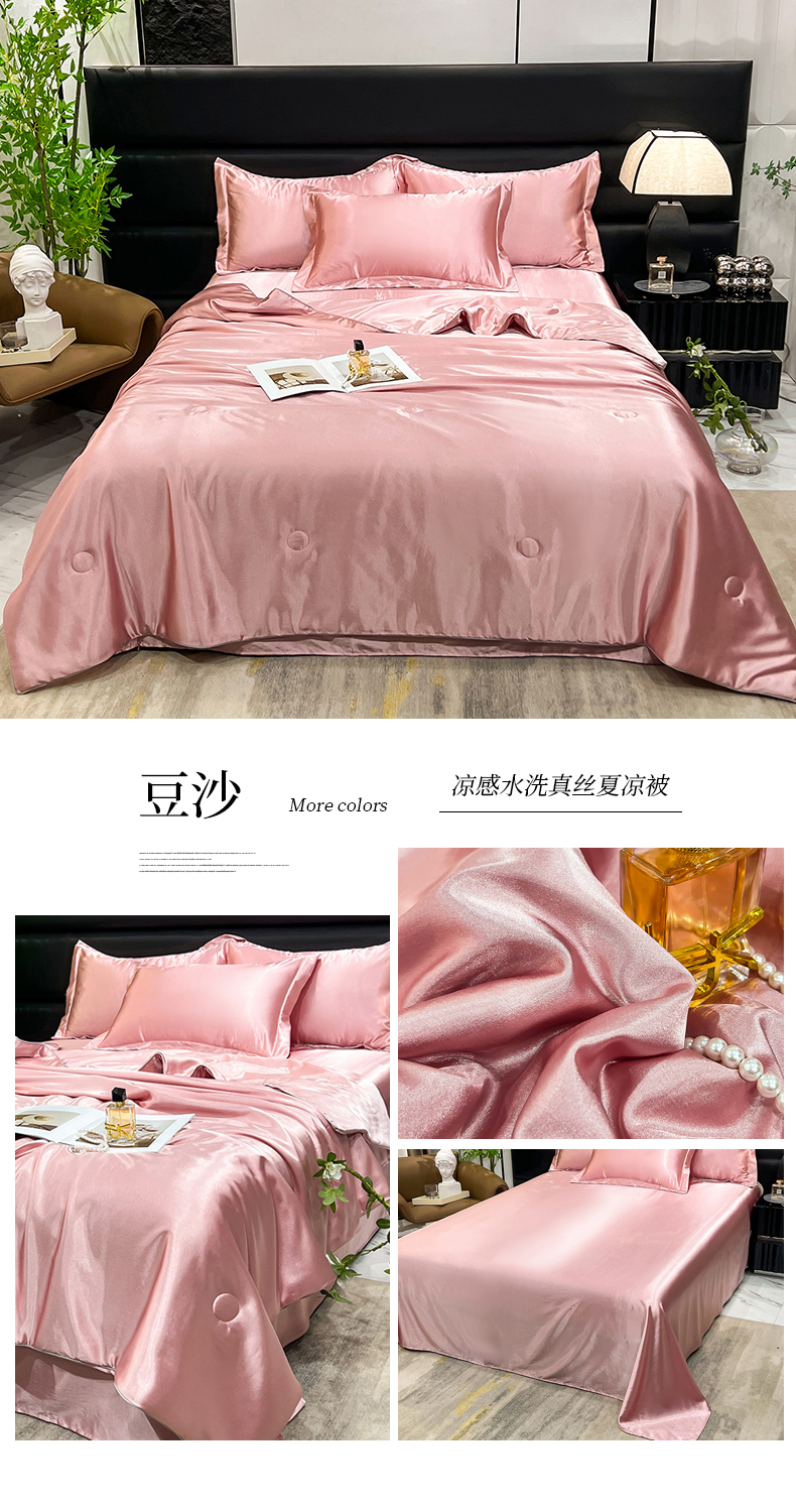 • 91家纺网 家纺一手货源 找家纺 经年 2025夏季新款丝绸真丝手感水洗真丝天丝夏被夏凉被空调被四件套 夏被-豆沙