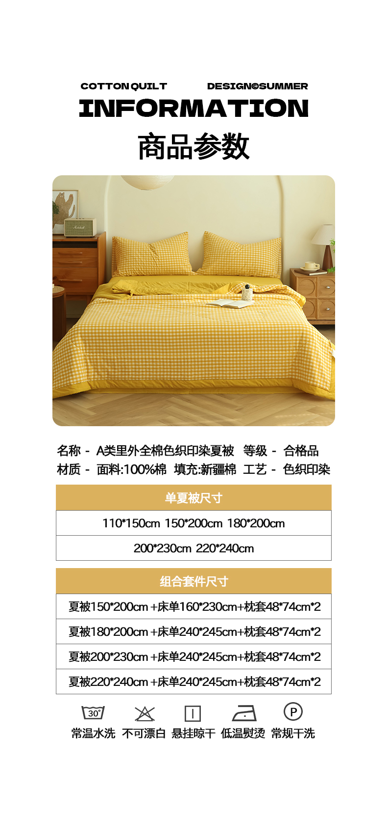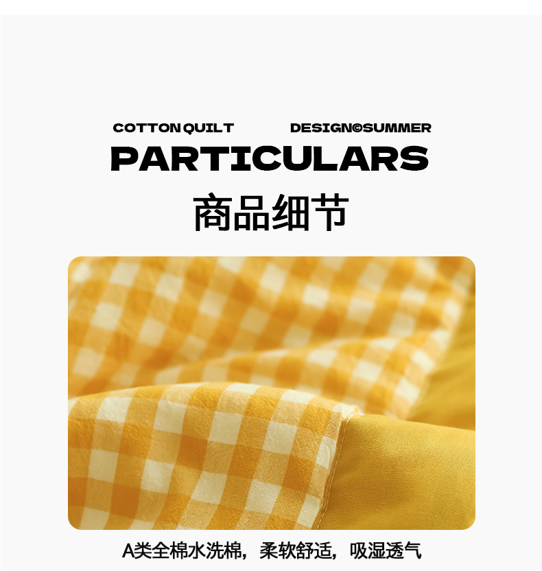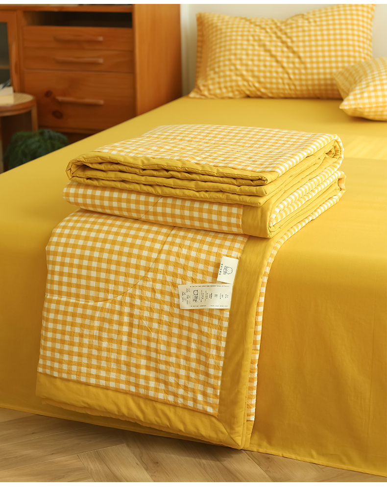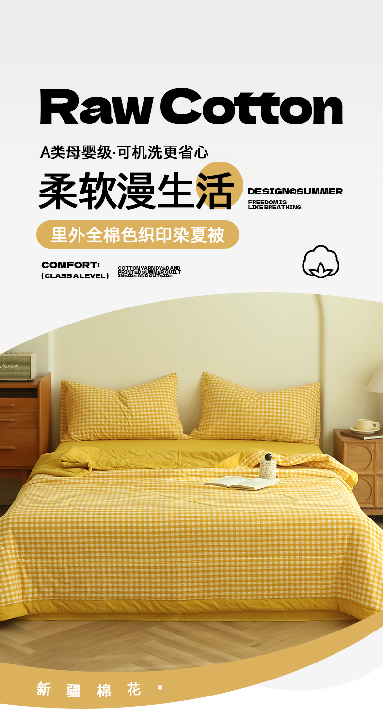 • 91家纺网 家纺一手货源 找家纺 雯雨家纺 2025新款A类无印风里外全棉纯棉水洗棉新疆棉花夏被夏凉被空调被 黄小格
