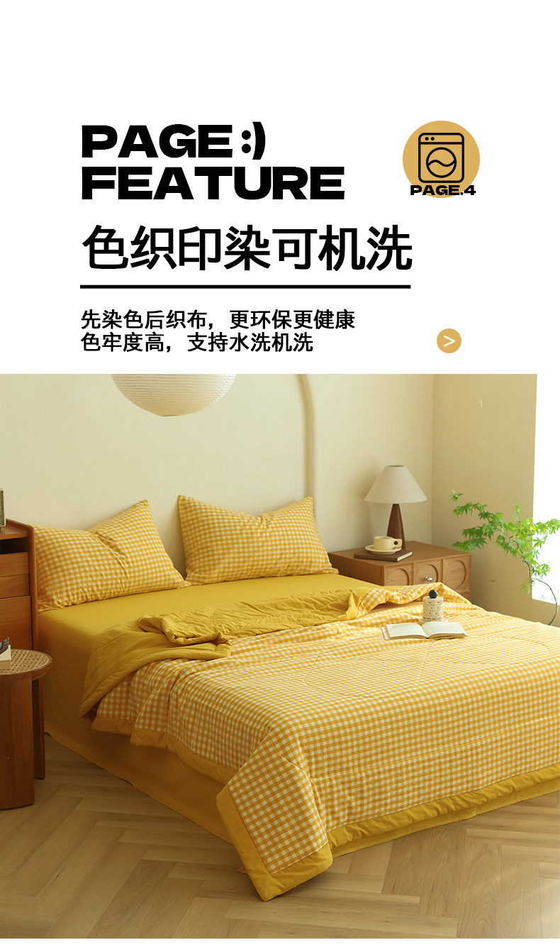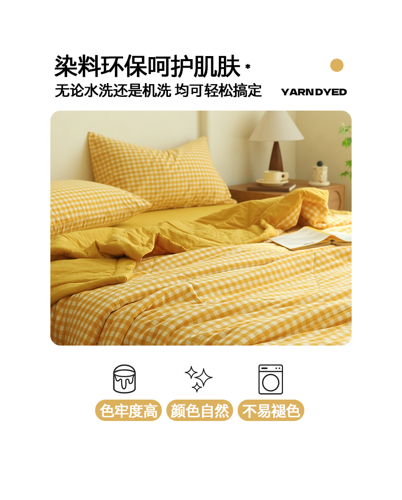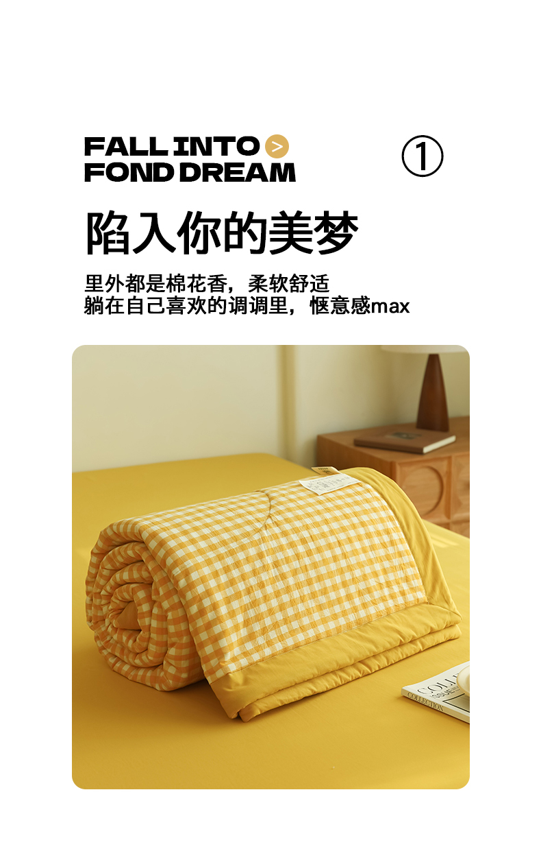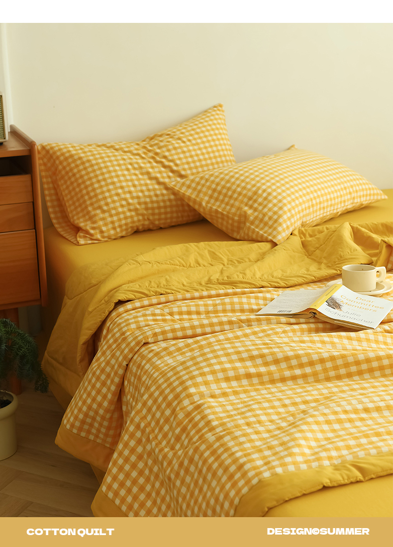 • 91家纺网 家纺一手货源 找家纺 雯雨家纺 2025新款A类无印风里外全棉纯棉水洗棉新疆棉花夏被夏凉被空调被 黄小格