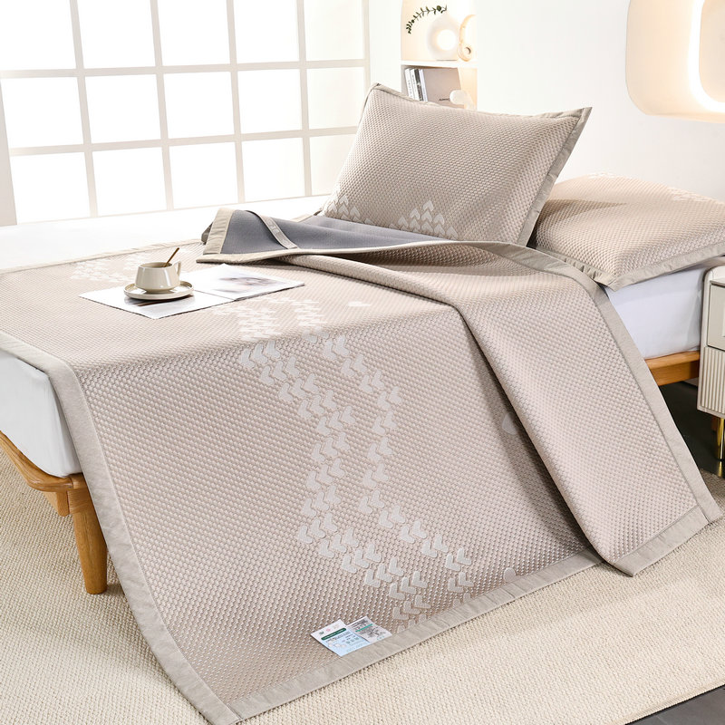(总)新月家纺 2022新款冰藤席绣花款凉席套件,艾草 金色,艾草 咖色