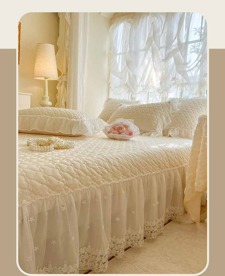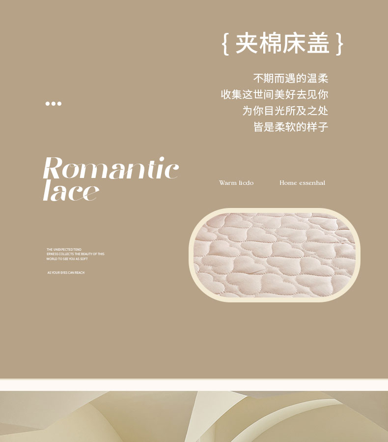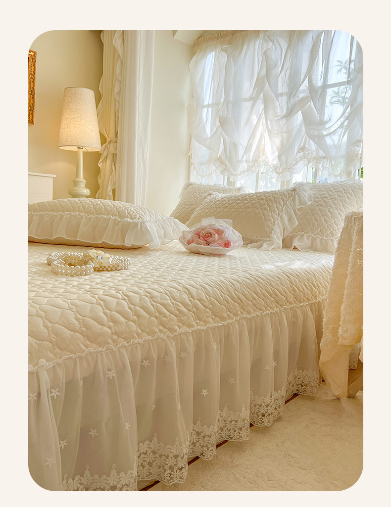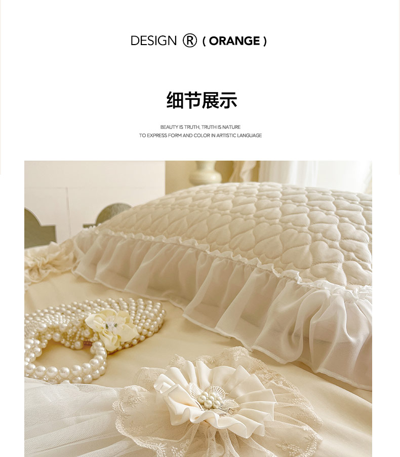 商品名称:(总)亲亲公主家纺2025新款100支长绒棉全棉蕾丝夹棉床盖四件套-巴黎春天