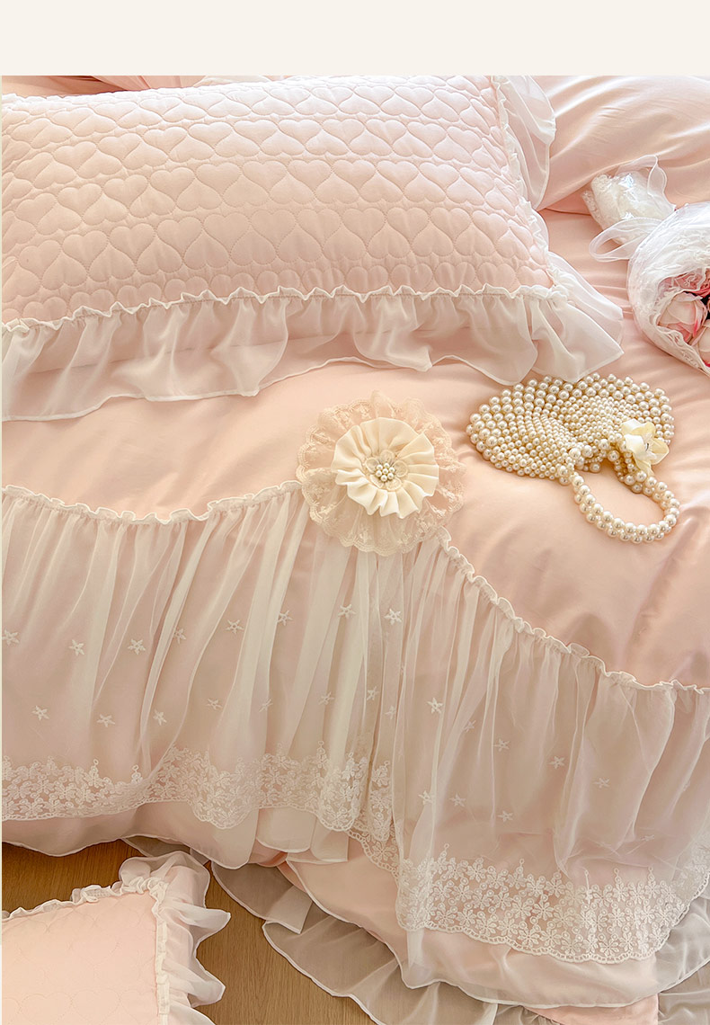 (总)亲亲公主 2025新款全棉法式宽花边四件套-浅浅爱,浅浅爱