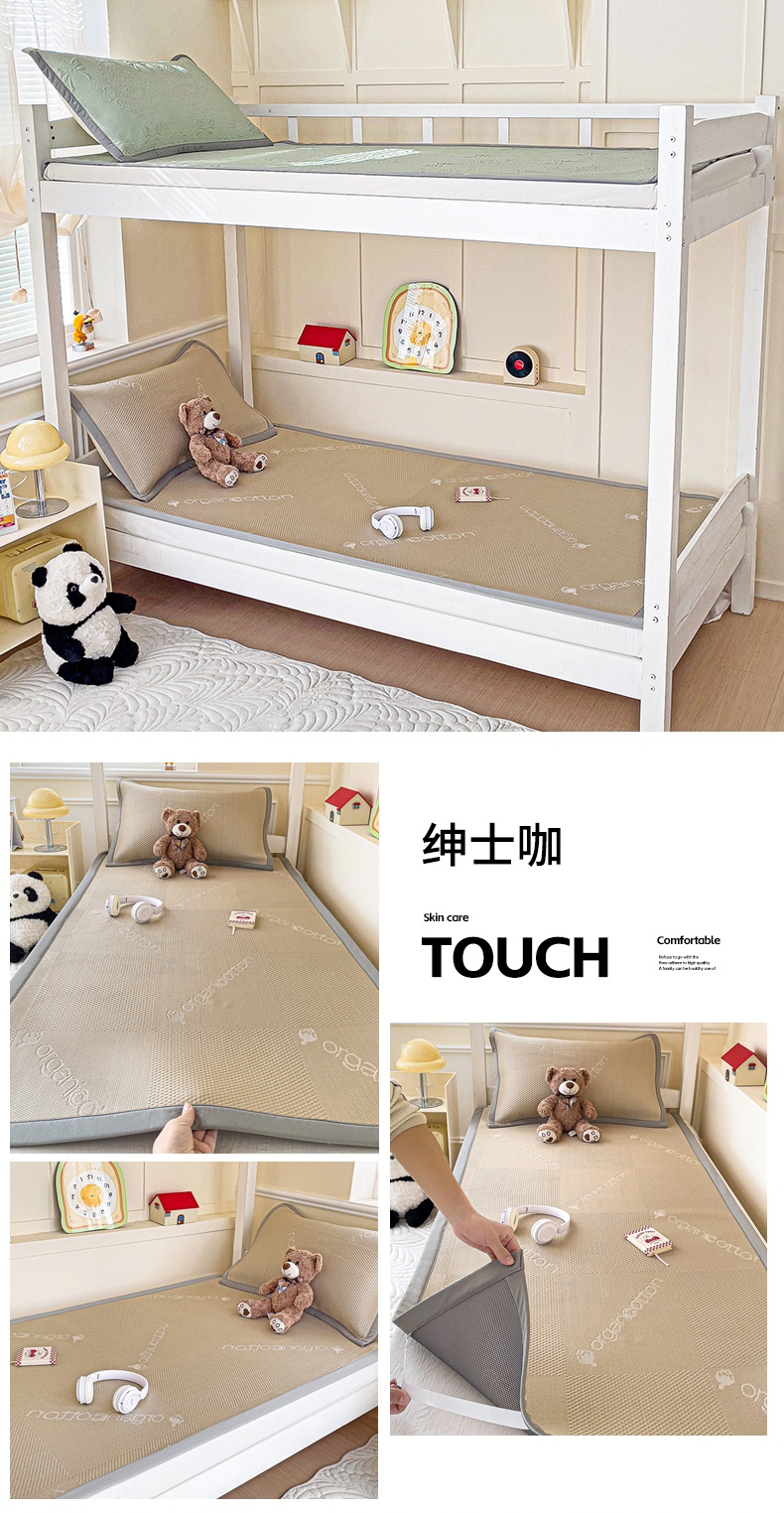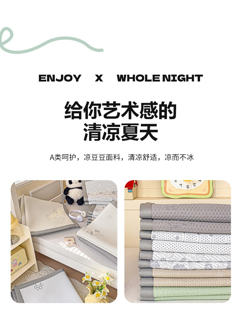 • 91家纺网 家纺一手货源 找家纺 富馨莱 2025新款A类480克PE凉感凉豆豆凉席三件套和单件学生款 快乐熊仔