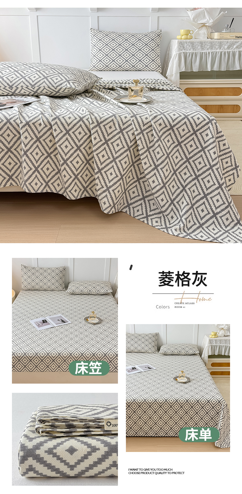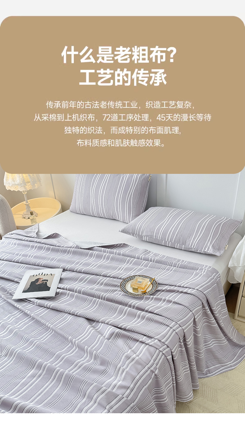 商品名称:(总)KA家纺 2025夏季新款纯棉全棉老粗布床单床笠凉席(起球包退)