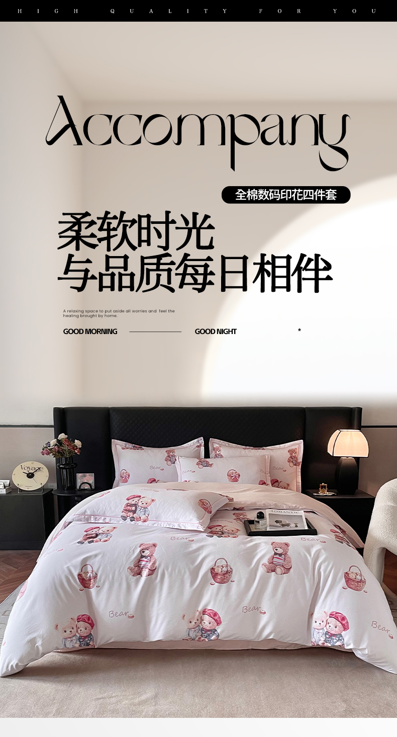 商品名称:金纱玉纺家纺 2025新款全棉13376数码印花四件套(礼盒包装)351A2