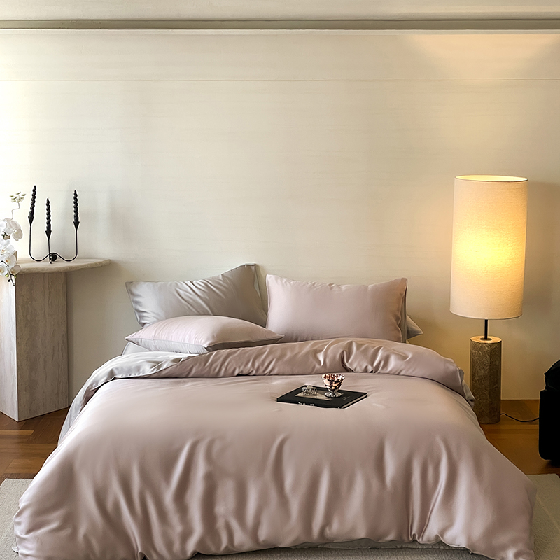 商品名称:2025新款60支兰精天丝轻奢纯色双拼四件套 敦煌色-曙光银