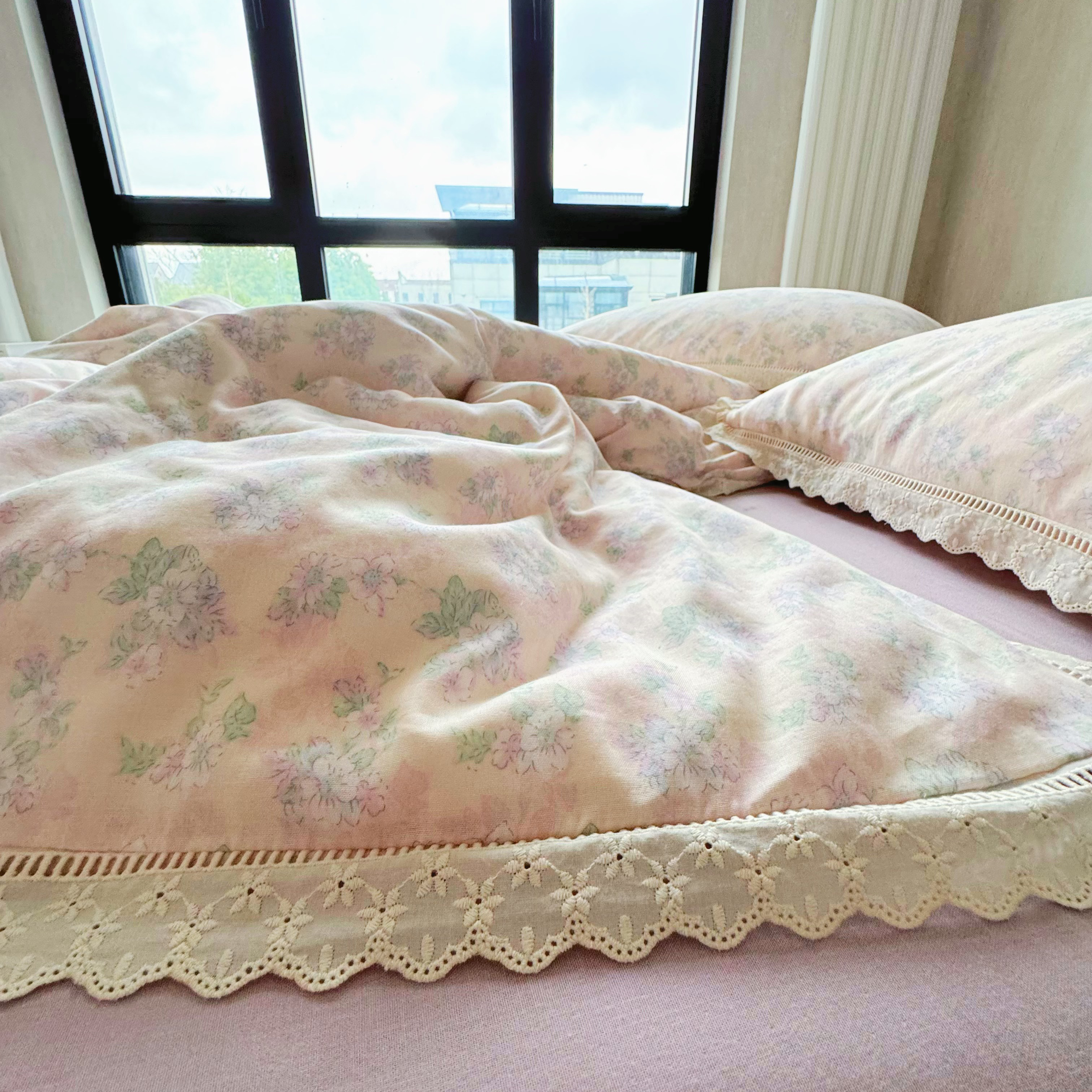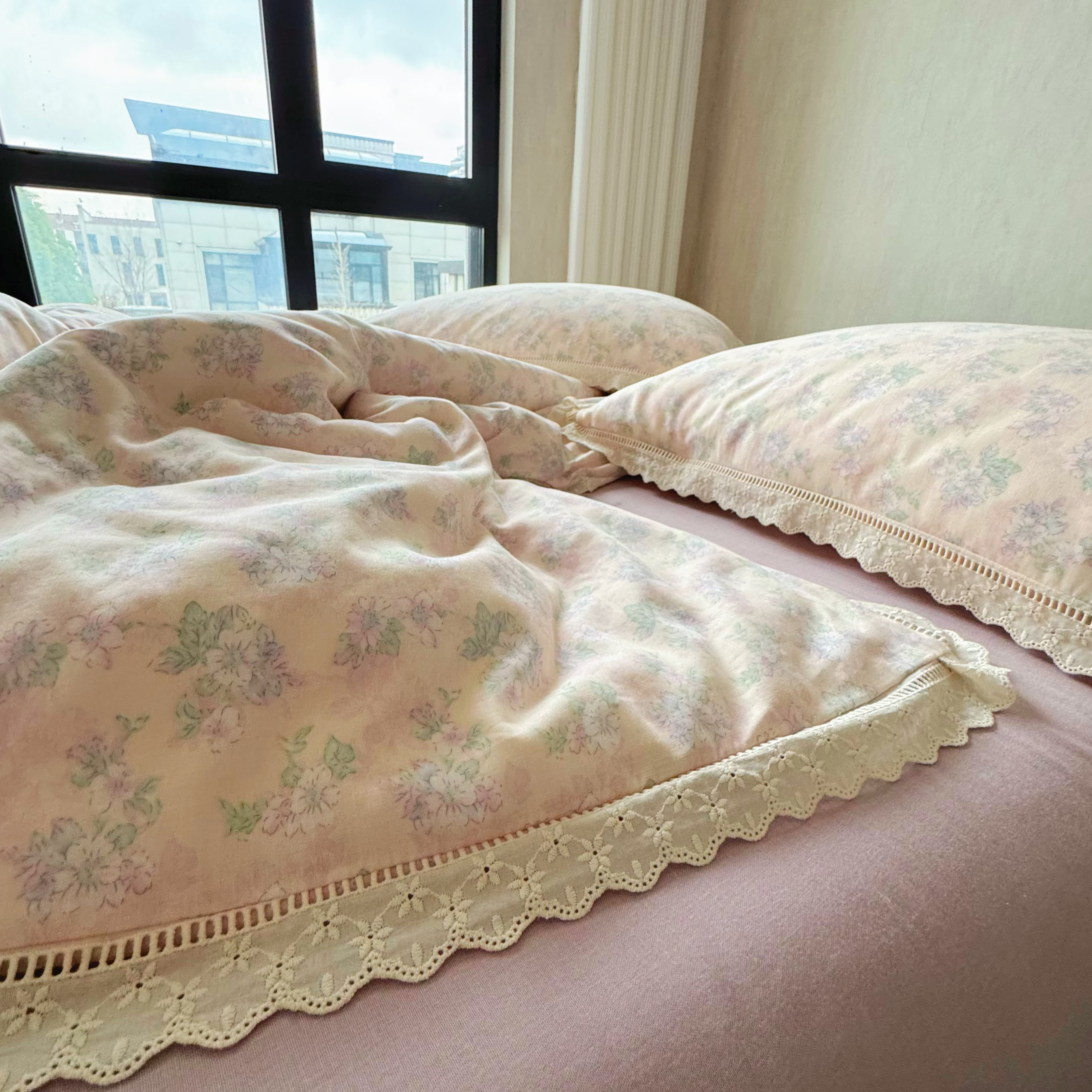 8+8 (花型持续更新中)2025新款全棉双层纱镂空花边/皱皱花边四件套 妮卡