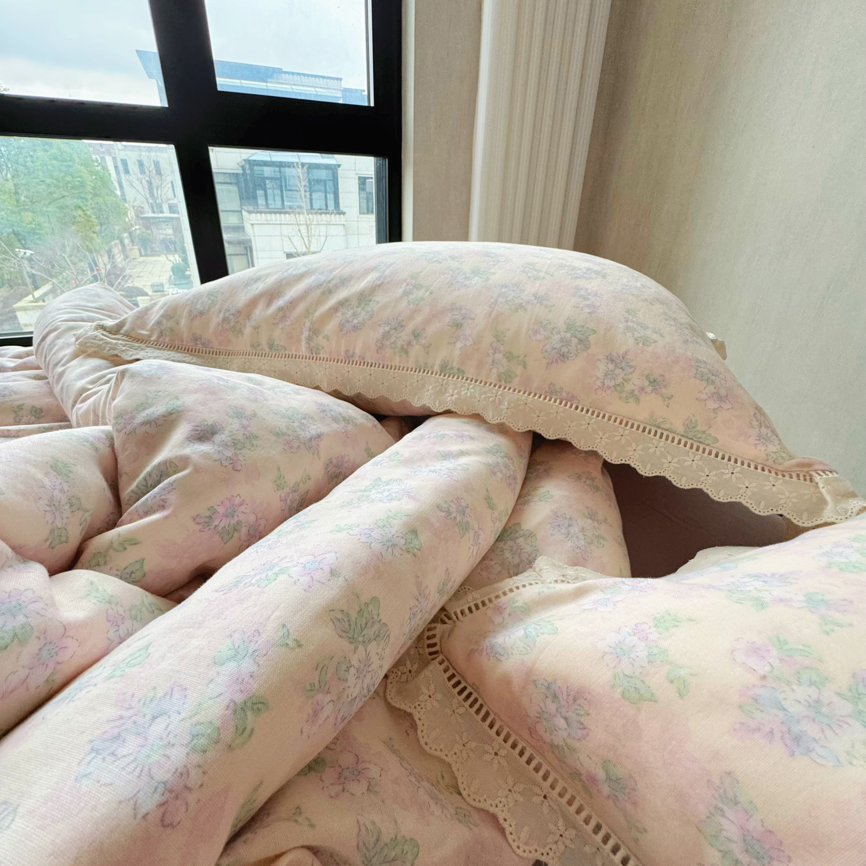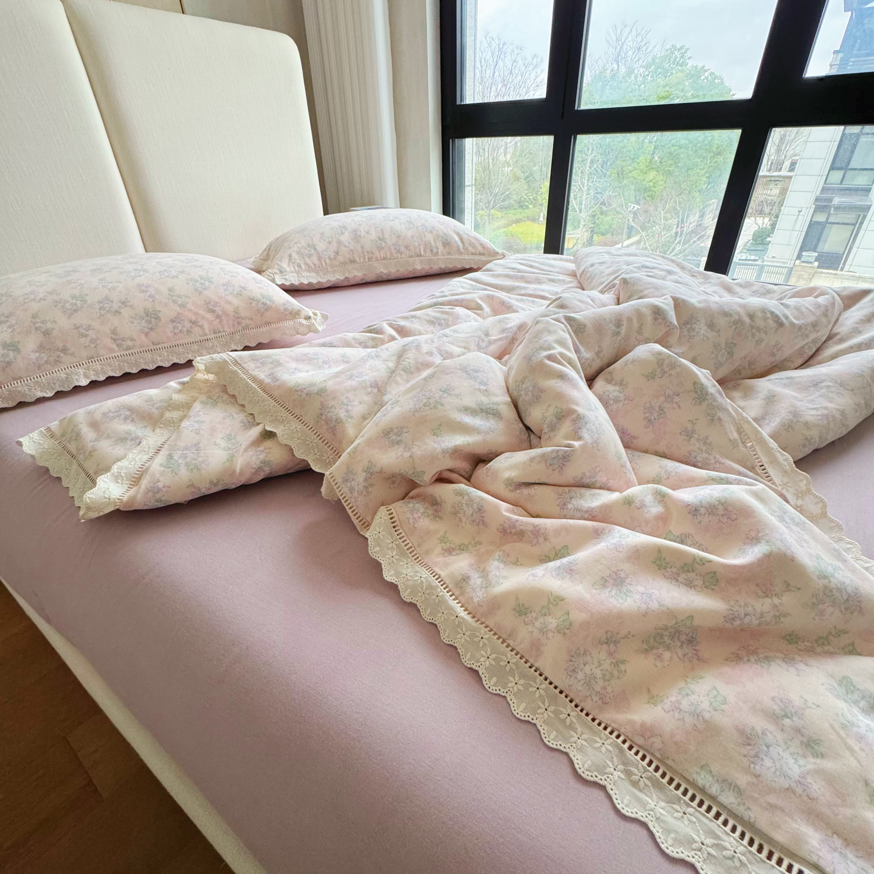 8+8 2025新款全棉A类母婴级抗菌有氧全棉双层纱亲肤全棉小清新印花三件套四件套 简约款-极简主义粉,简约款-极简主义粉