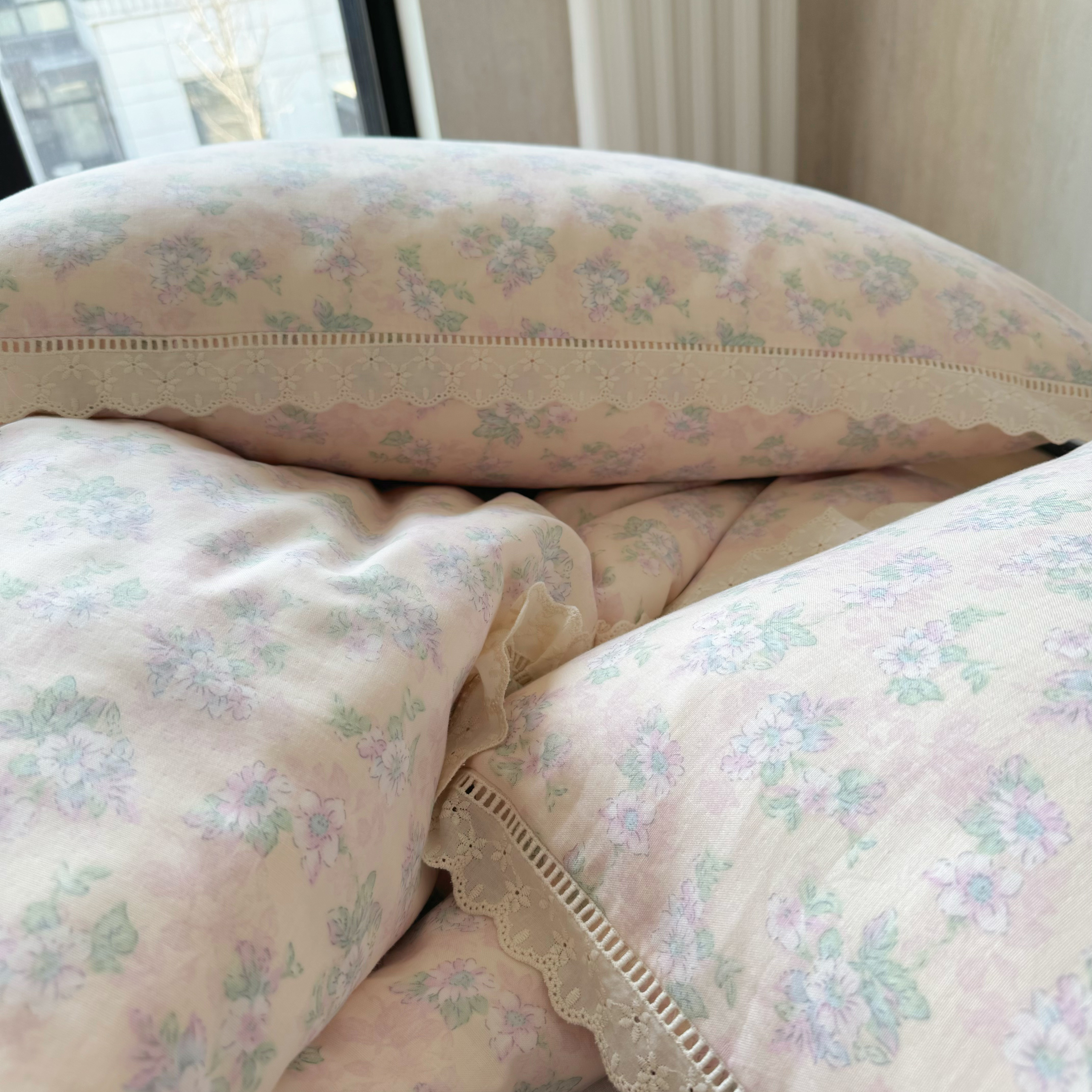8+8 2025新款全棉A类母婴级抗菌有氧全棉双层纱亲肤全棉小清新印花三件套四件套简约款-雨沫,简约款-雨沫