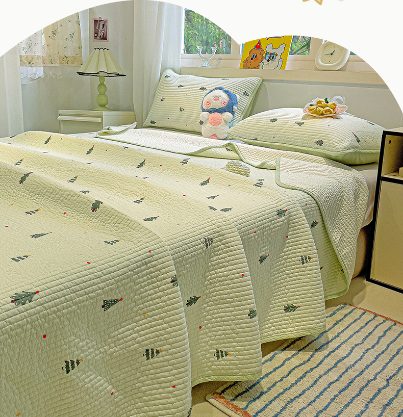 漫时光 2025新款全棉纯棉新疆棉花夹层单床盖 圣诞树