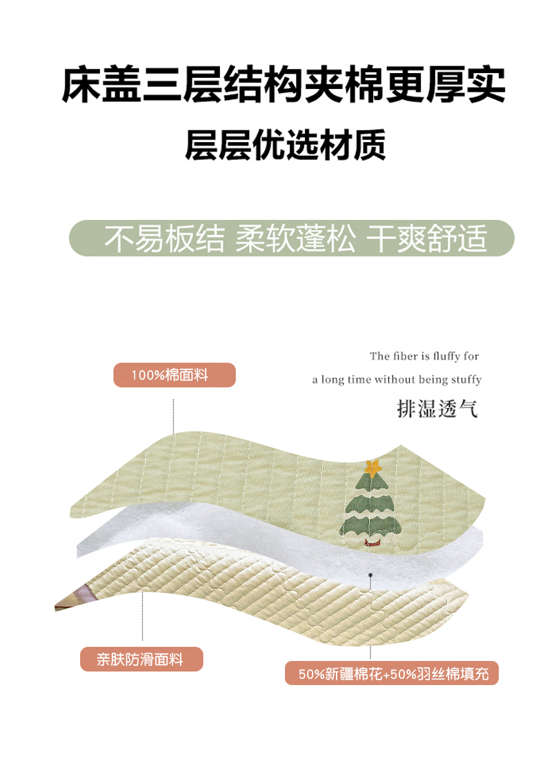 • 91家纺网 家纺一手货源 找家纺 漫时光 2025新款全棉纯棉新疆棉花夹层单床盖 圣诞树