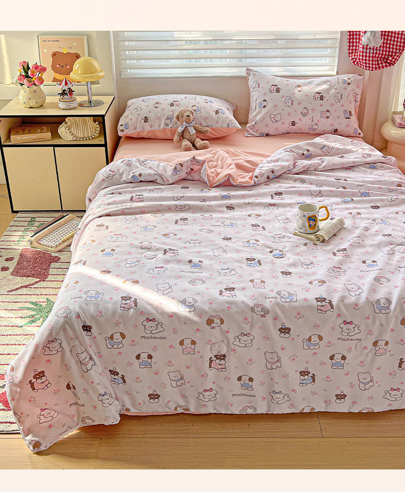 商品名称:妖妖家纺 2025新款超柔双层纱糯糯针织棉夏凉被四件套 狗狗乐园