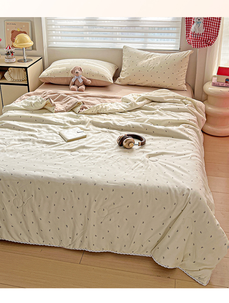 妖妖家纺 2025新款超柔双层纱糯糯针织棉夏凉被四件套 小蝴蝶-奶白