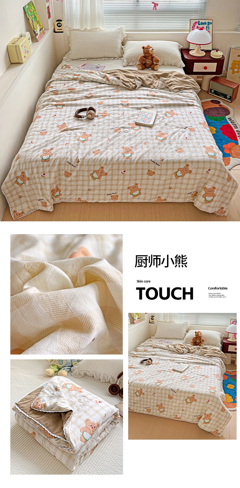 妖妖家纺 2025新款超柔双层纱糯糯针织棉夏凉被 厨师小熊
