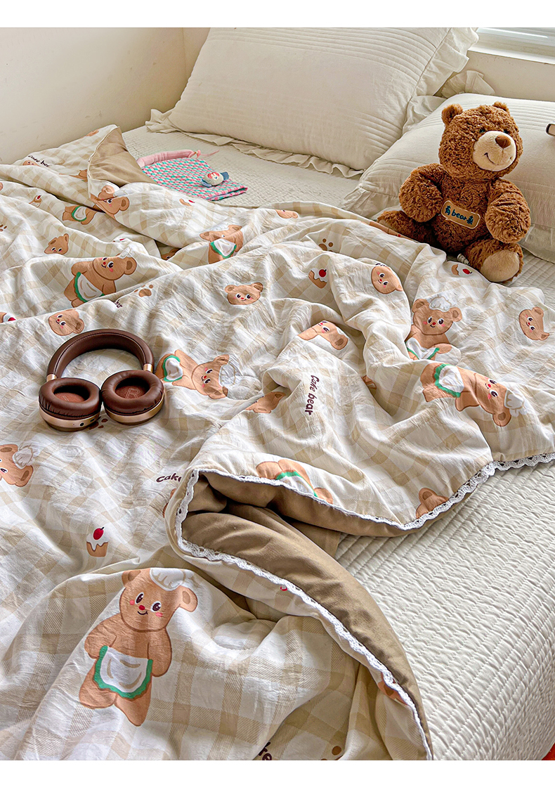 商品名称:妖妖家纺 2025新款超柔双层纱糯糯针织棉夏凉被 厨师小熊