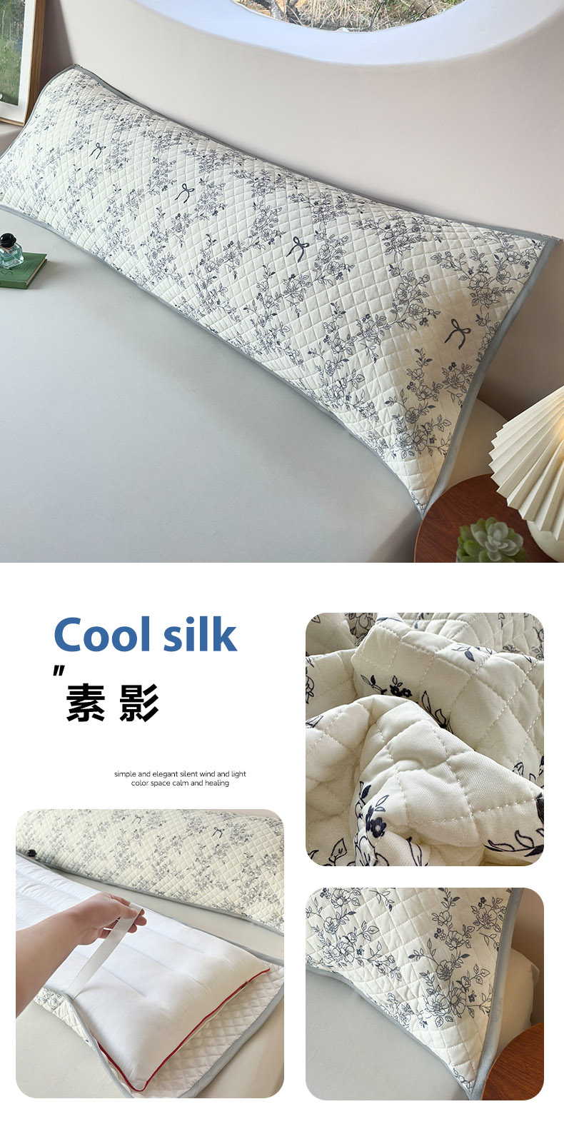 爱港家纺 2025新款凉感丝双人长枕巾 夏季情侣枕头巾 绑带长枕巾 素影 150*48