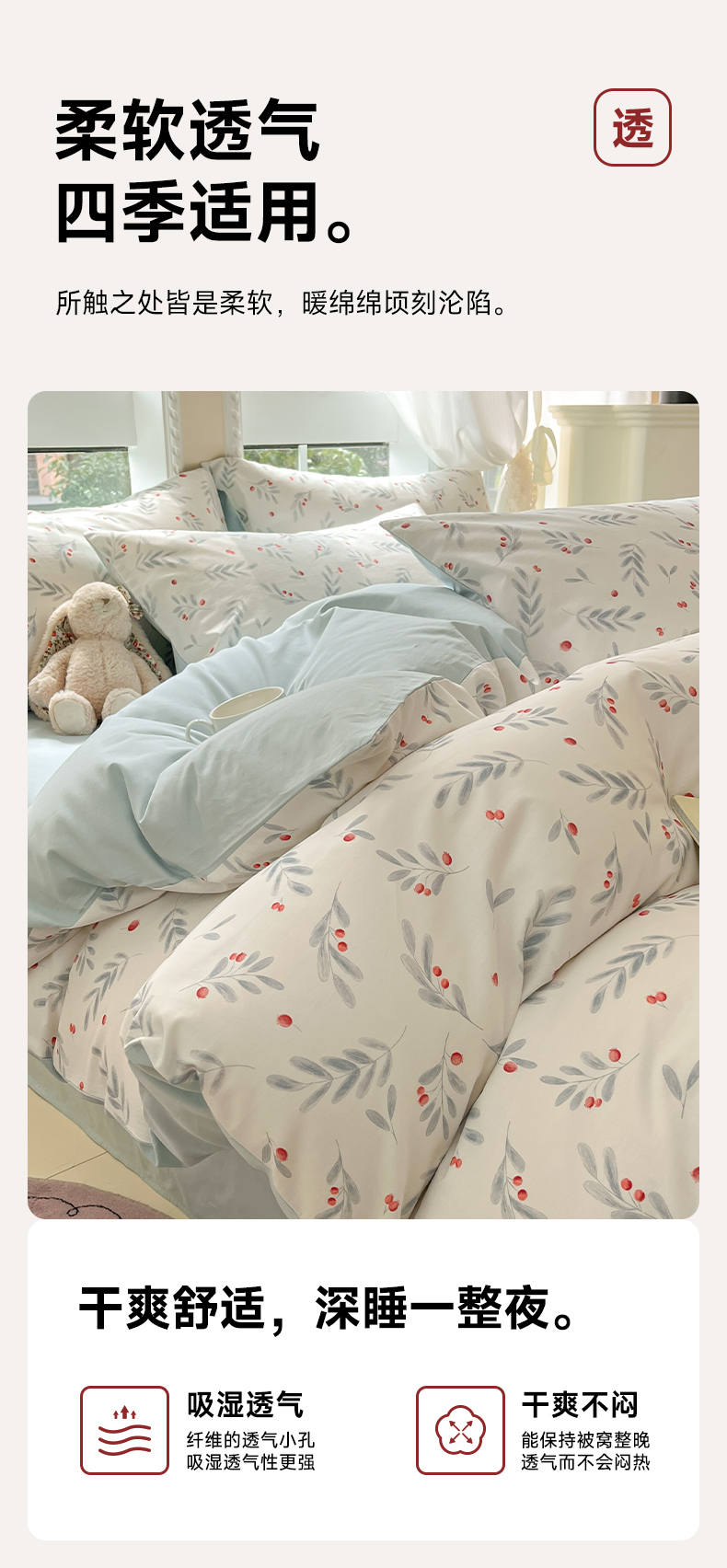 商品名称:仔仔熊 2025新款全棉印花四件套 清新植物