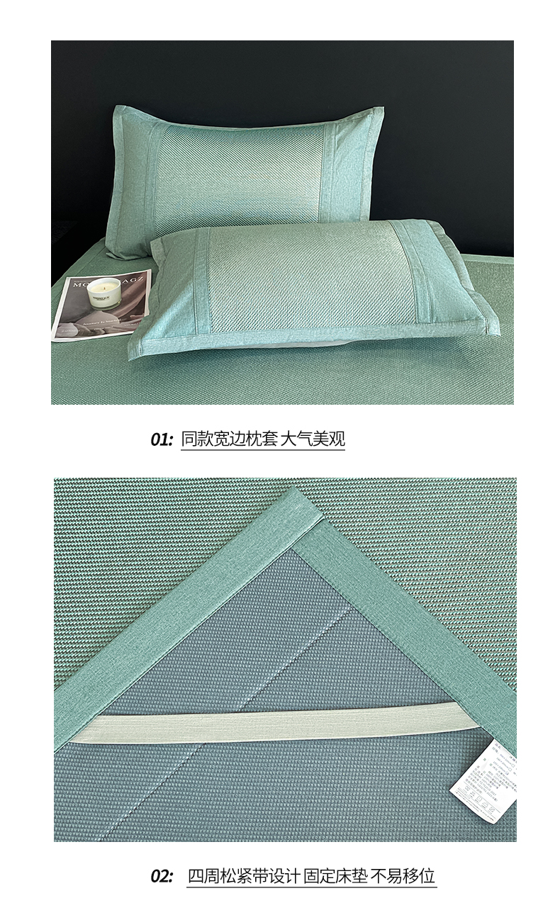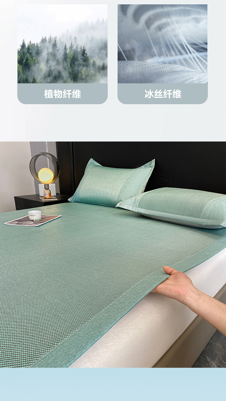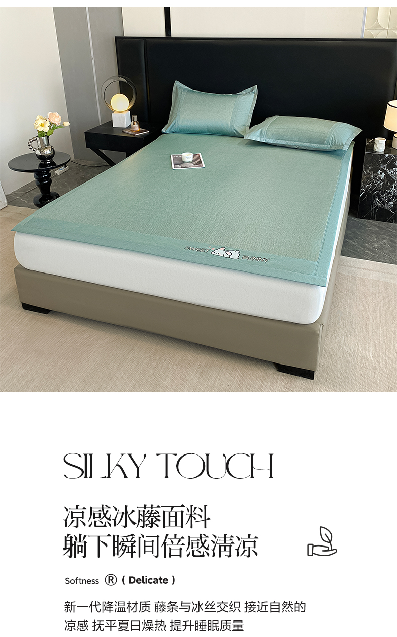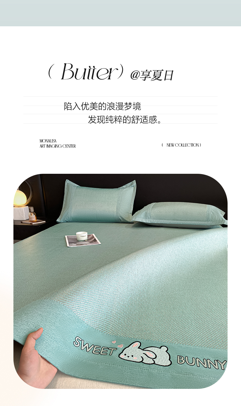 莱米家纺 2025新款加厚凉感绣花冰藤席 可爱兔—湖绿-凉席