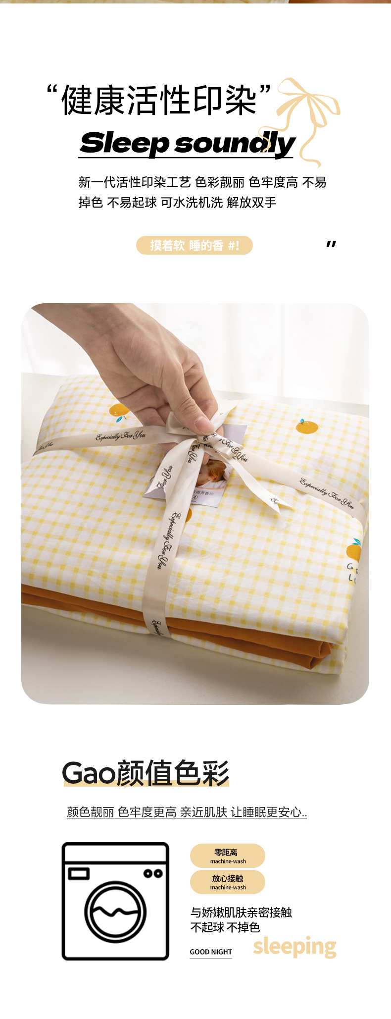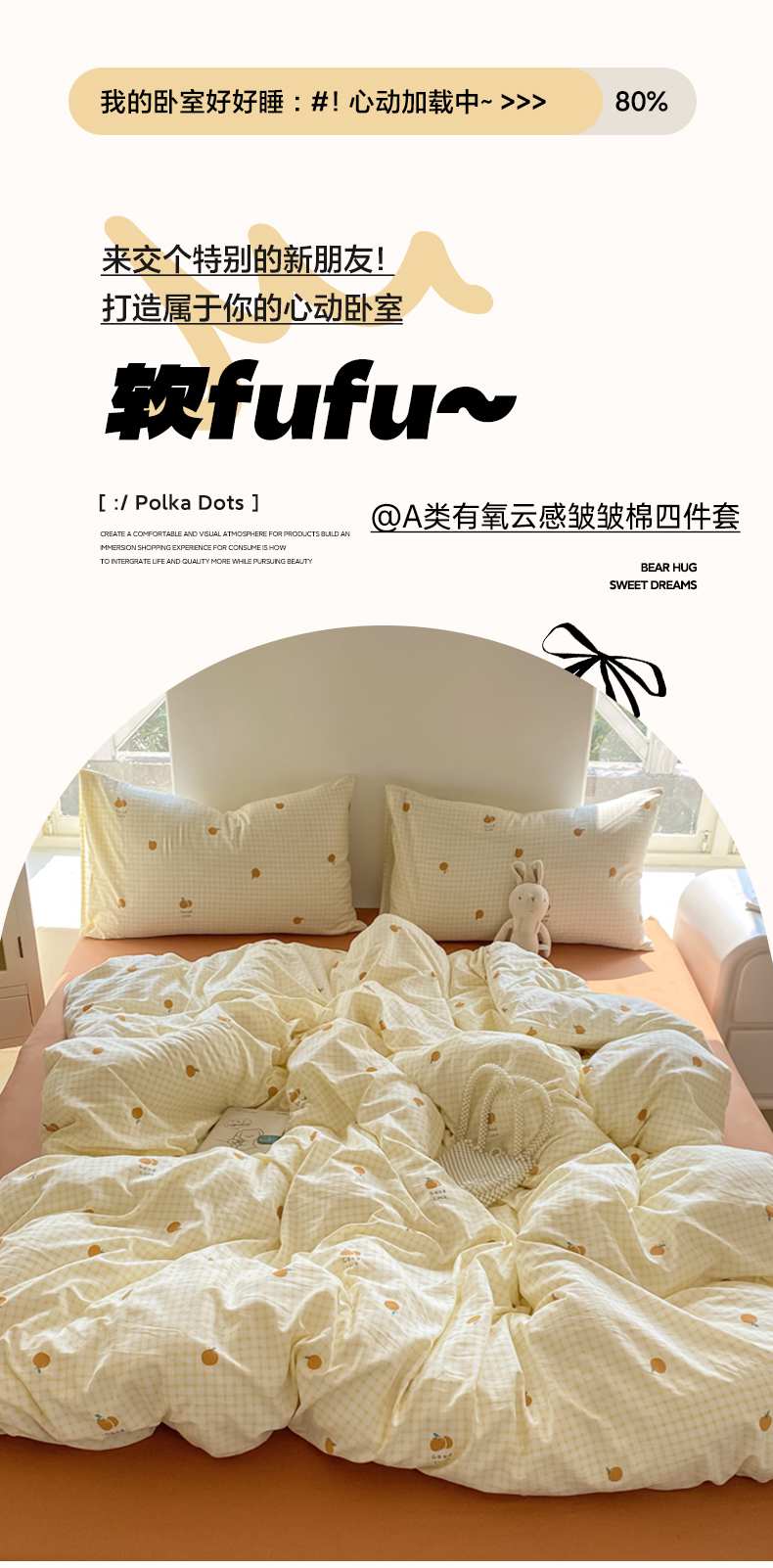 当前位置: 91家纺网 > 商品网购 > 床品套件 > 四件套 > 全棉普通四件套 > 【提供买家秀】2025直播云感皱皱棉四件套水洗棉简约风小碎花被套床笠三件套-平铺图 好事橙双